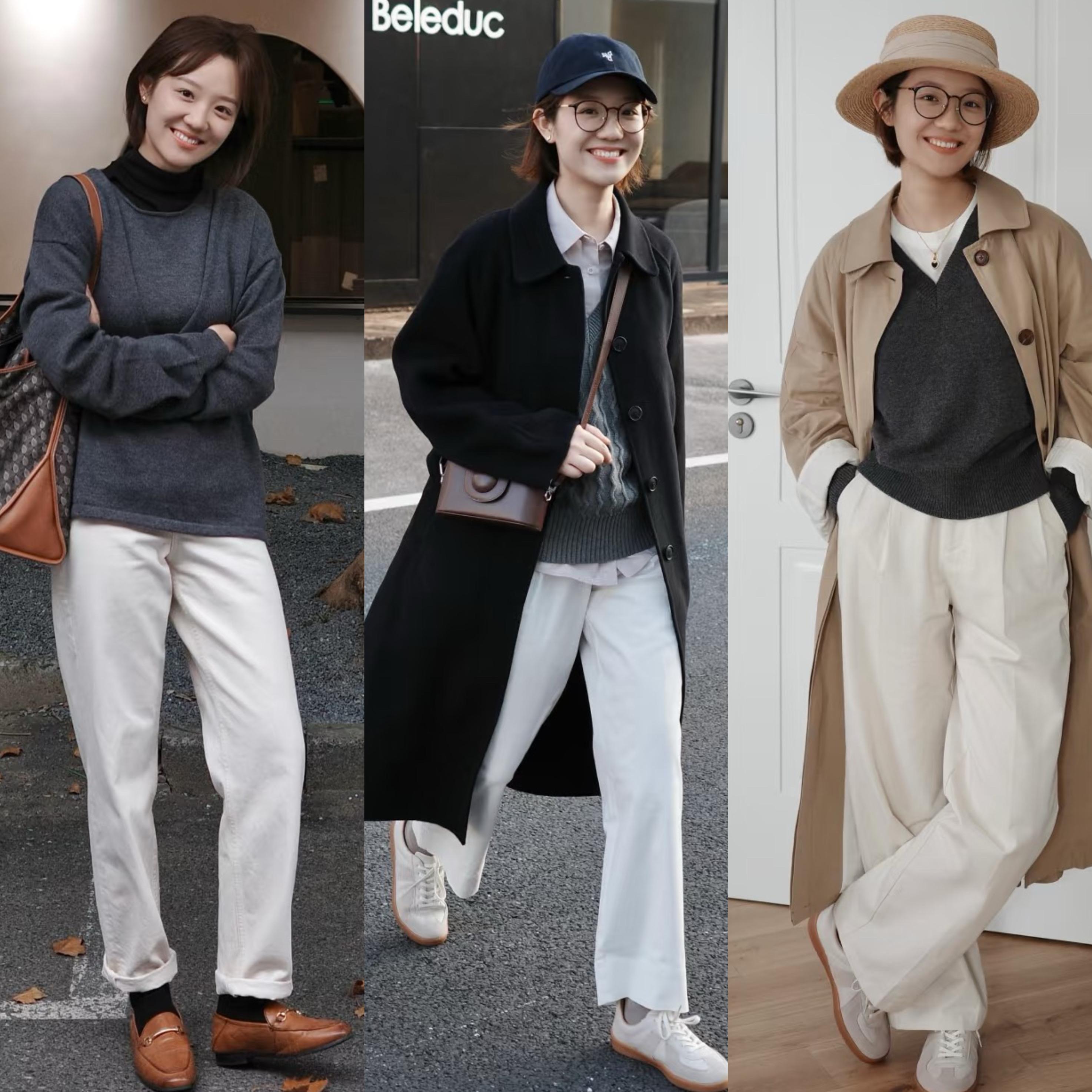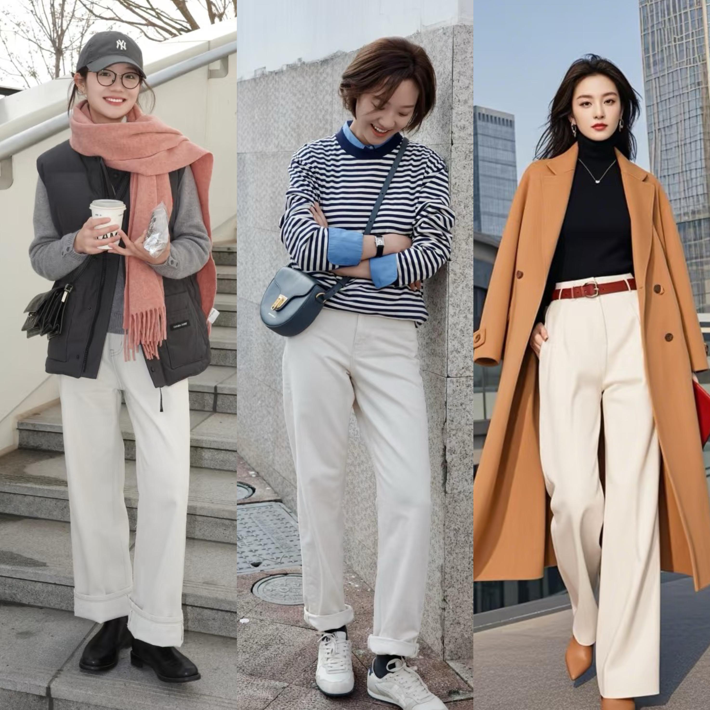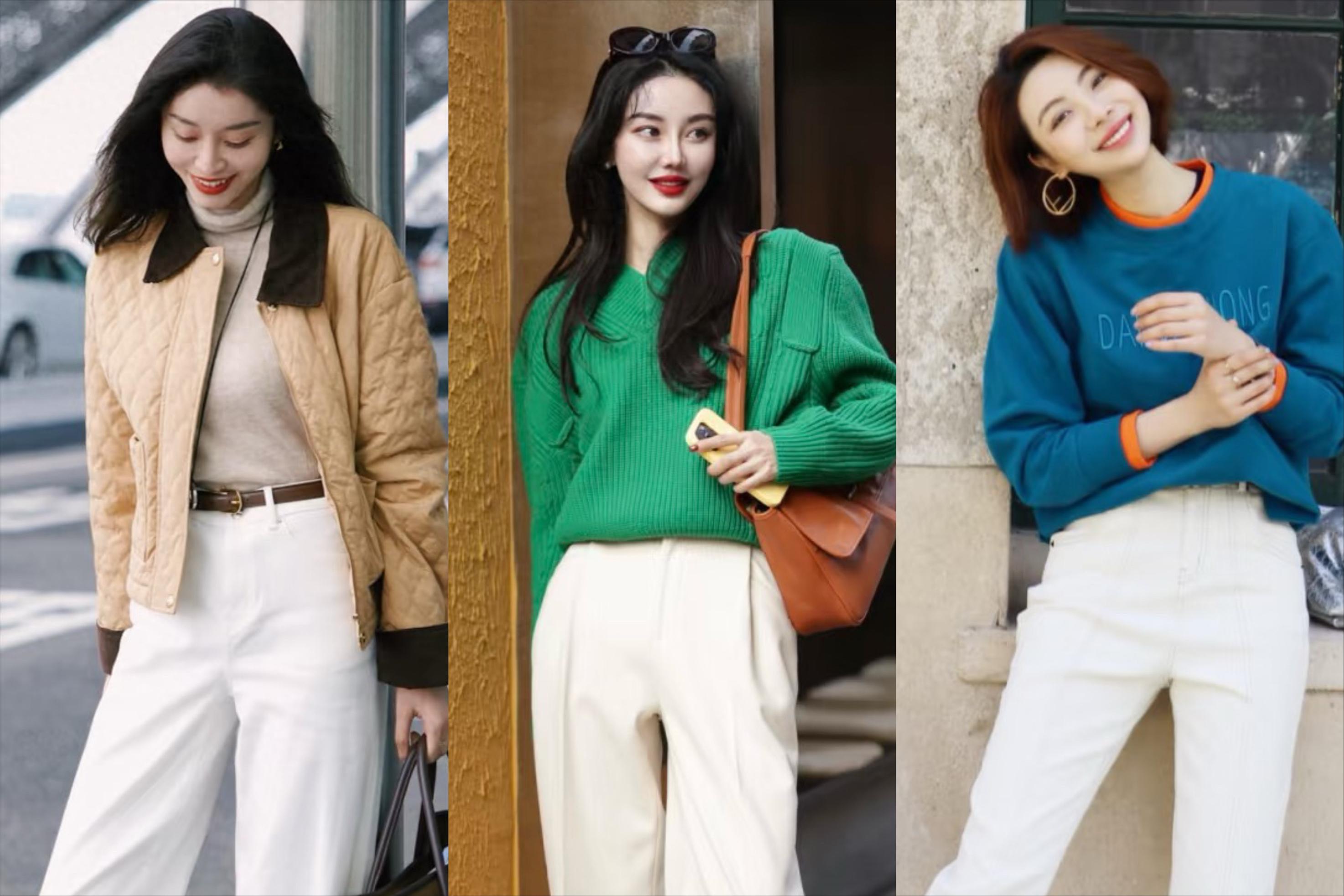 亮色系的毛衣、款式基礎的打底衫、高級但有點單調的外套,都需要一件單品中和那種乏味。白褲子就是冬季基礎穿搭裏的調味劑,讓穿衣搭配變得時髦洋氣。