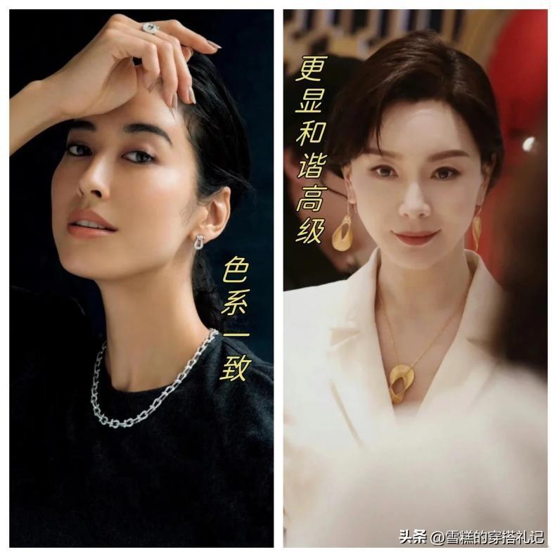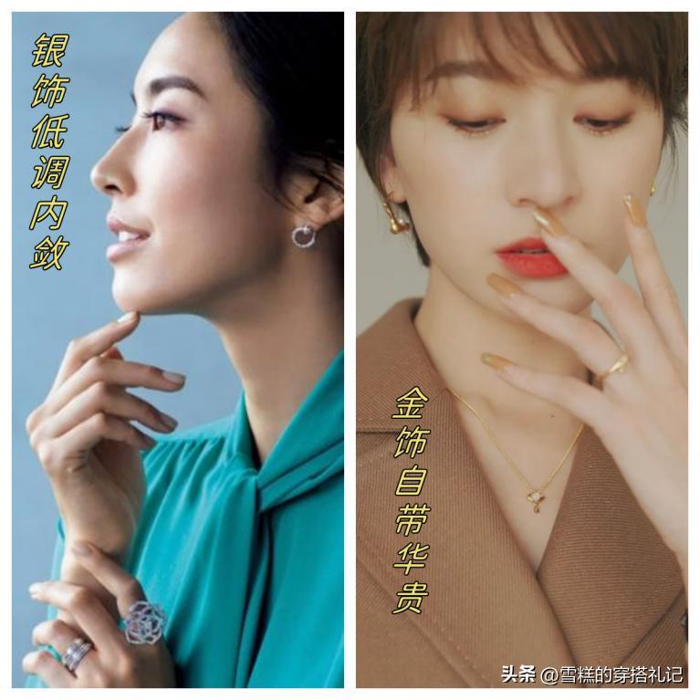 很多女性特別偏愛黃金首飾,但是由於黃金的飽和度較高,很容易暴露我們皮膚的問題。因此,選擇首飾的顏色優先考慮低飽和的色系,會更加百搭和襯膚一些。同時彩色系的飾品,也會比較挑人,建議選擇基礎色系,會更加突出成熟女性優雅、端莊的氣質。