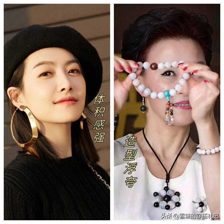 像是設計感很強的首飾,可能是衆多時尚愛好者的心頭好。雖然它們看上去是一種潮流單品,但是卻與中年女性身上成熟、優雅氣質相違背,看上去違和感特別厲害。這類首飾的特點一般是體積感很強,另外造型設計的比較浮誇,雖然視覺吸睛感強,但會給人土氣的視覺效果。