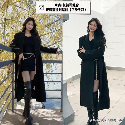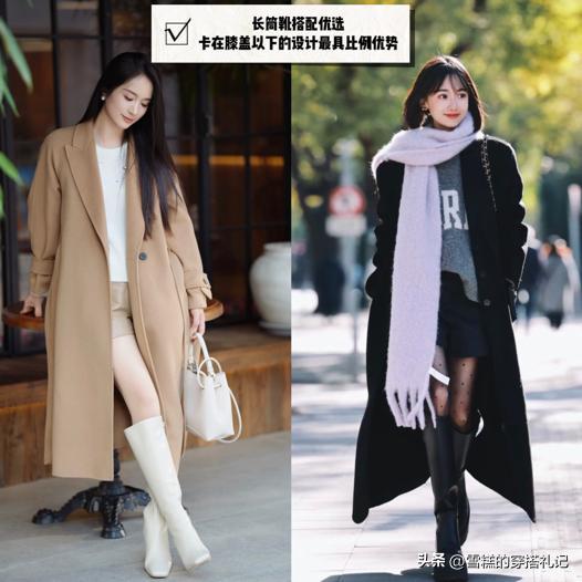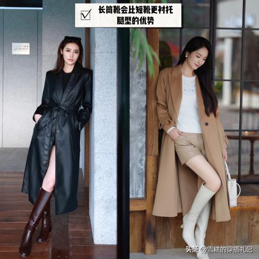 ㊁ 大衣+長筒靴---將{身材優勢直接營造}