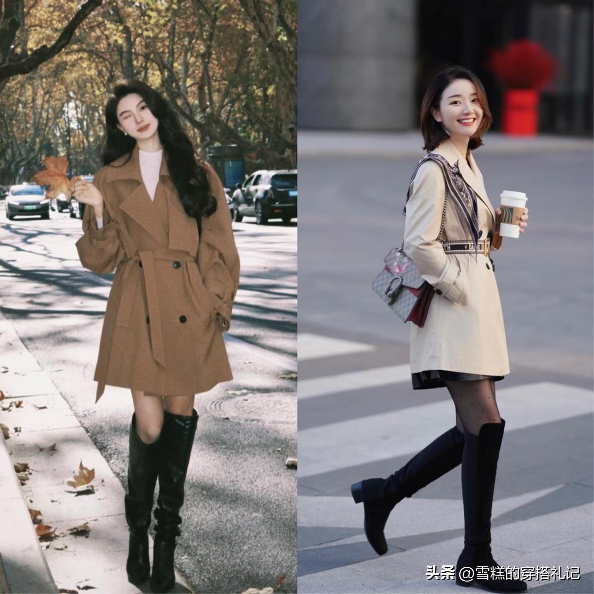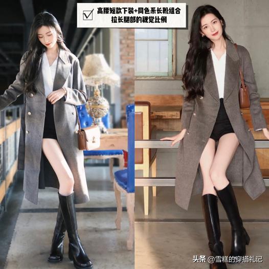 大衣和長筒靴來進行組合搭配的時候,其實就更適合讓我們的身材優勢直接被凸顯出來了,在這裏就推薦大家可以直接搭配高腰繫列的短裙或者是短褲結合與其同色系的長筒靴,整個視覺的中心位置就放在了被拉長拉伸的腿型上面,很適合各位五五分比例或者是腿型短促的女性這樣來搭配哦。