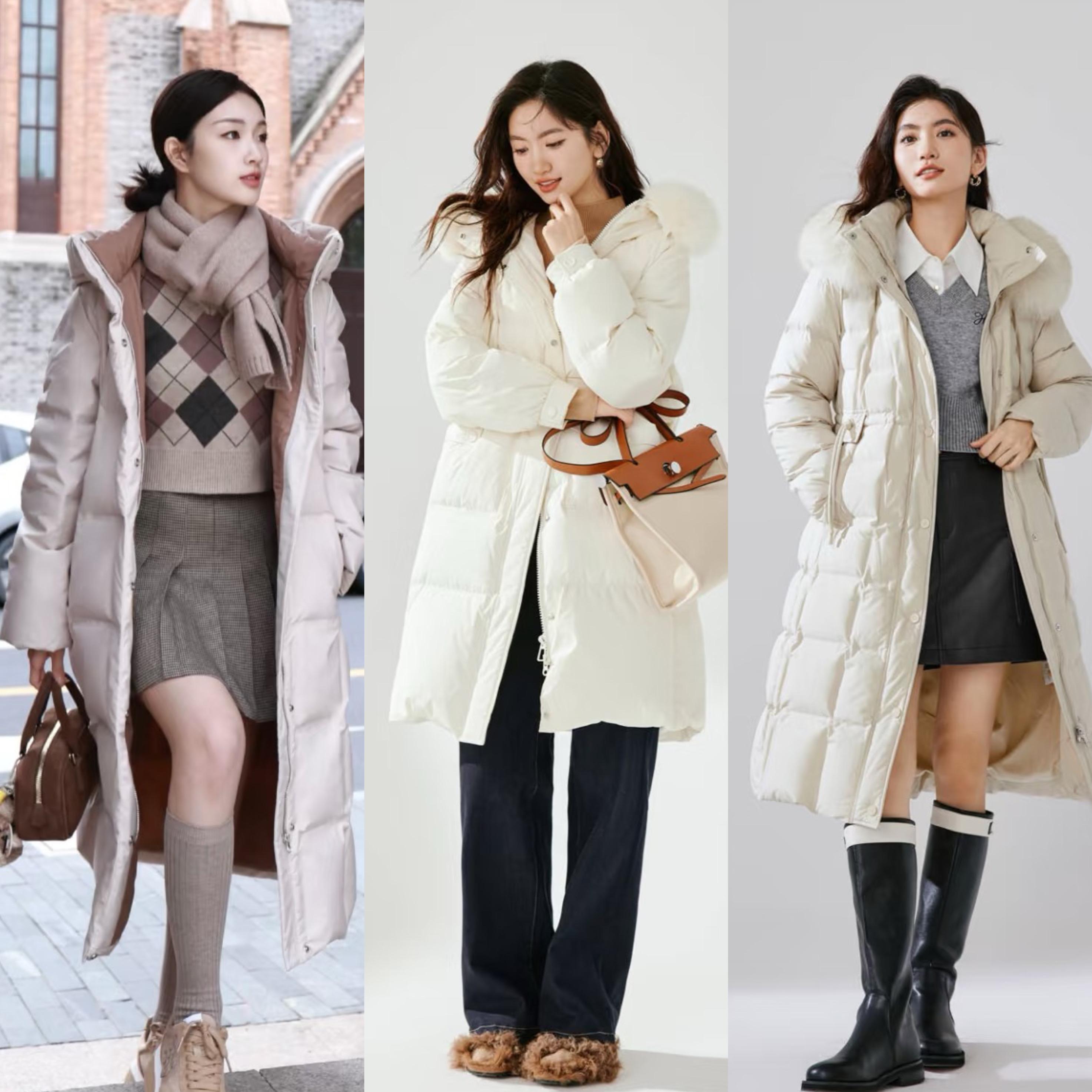 應對偶爾的降溫,就需要一件長款羽絨服來禦寒。像這種過膝的長款羽絨服,可以配直筒褲、A字形半身裙、長筒靴來穿,洋氣又保暖。