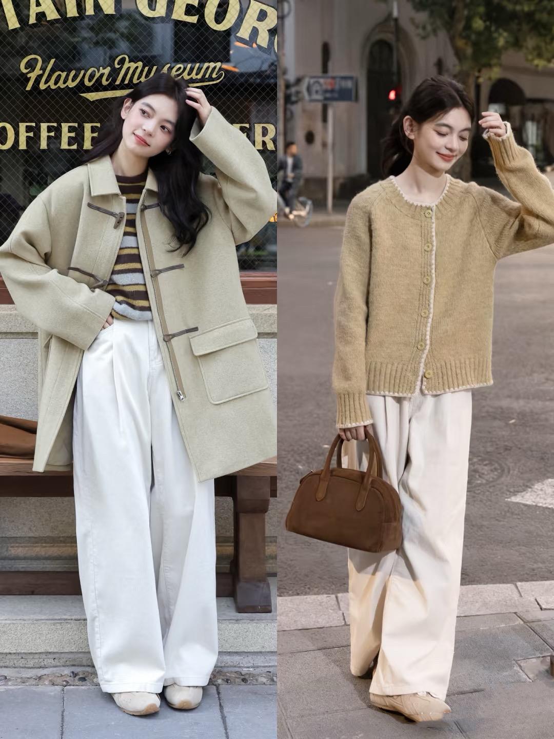 短款的呢外套,我們配一條高腰的白褲子,那種清爽、高級、體面的美,惹人注目。短款呢外套、更容易駕馭,也不會壓個子。