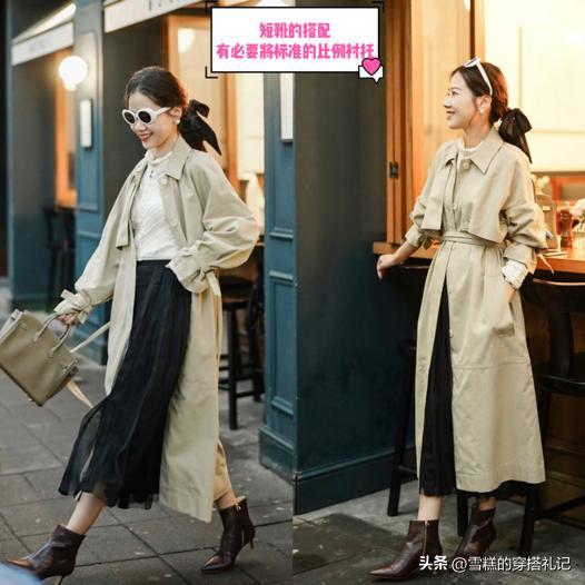 短靴的存在本身就比較利落,而且對於我們整個下半身的比例具有拉長的效果,那麼在選擇其他單品的時候,可以將高腰的分割位置給強調出來,例如搭配一款長款高腰的大衣,又或者是上短下長的搭配組合將標準的比例狀態襯托。