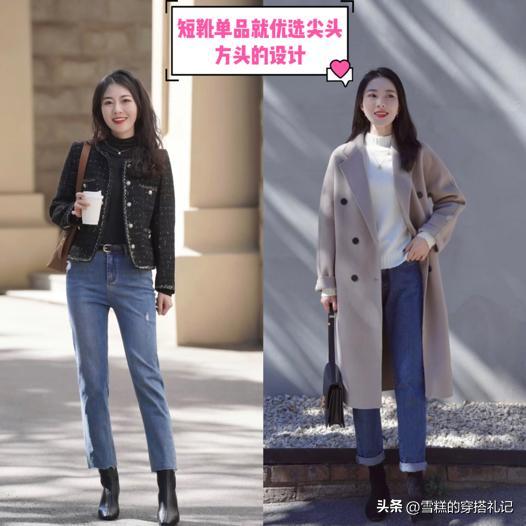 建議各位女性在最初入手短靴這款單品的時候可以優選像尖頭或者方頭這樣的鞋頭設計,從視覺上而言時髦感以及利落高級的視覺質感能夠被很好地彰顯出來,如果是圓頭的話,那麼穿起來的時候就略顯普通了。所以不管是對於氣質狀態還是身形,都很有必要優選前者。