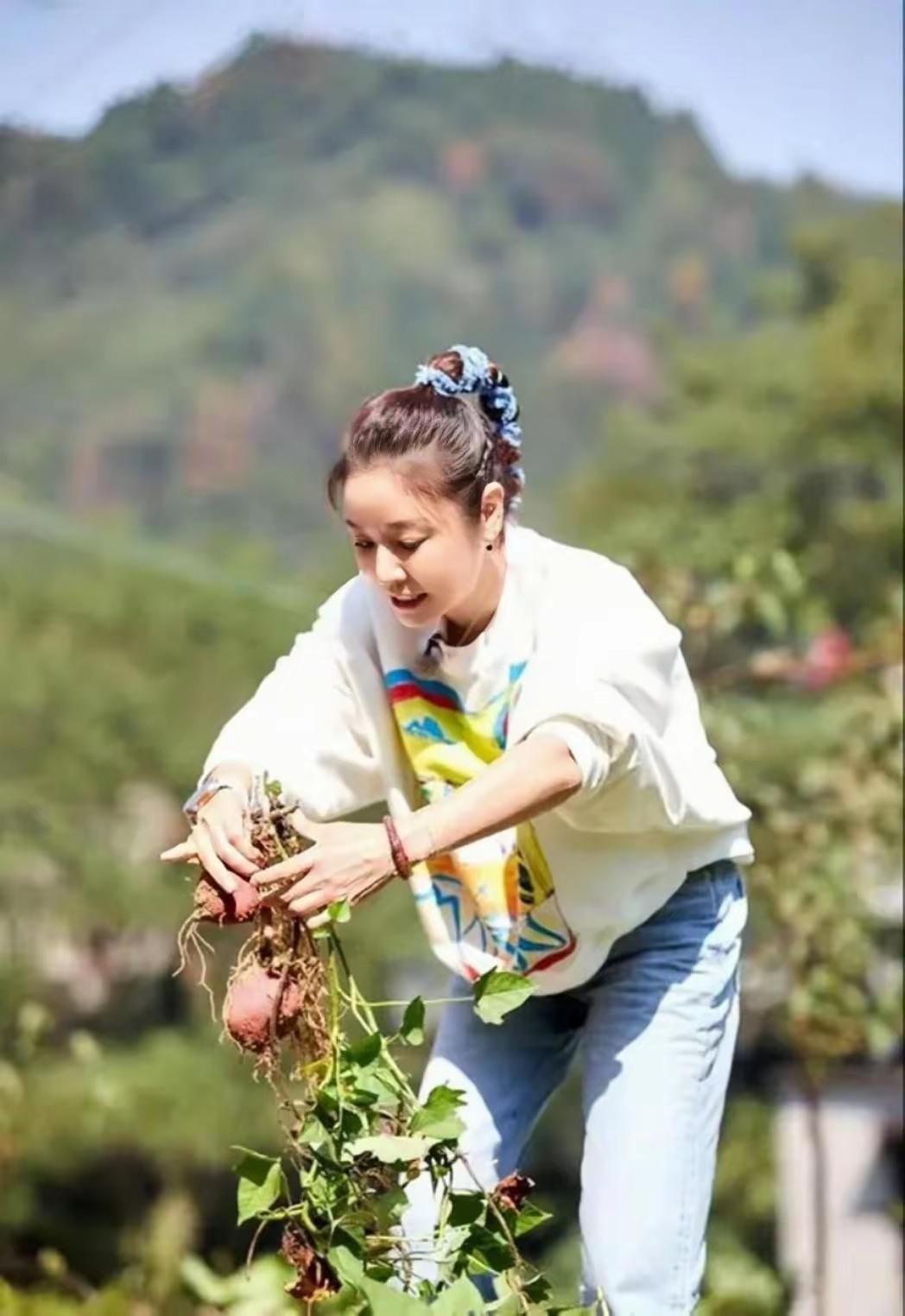48歲林心如真會扮嫩,穿“印花衛衣+牛仔褲”,扎高馬尾年輕十歲