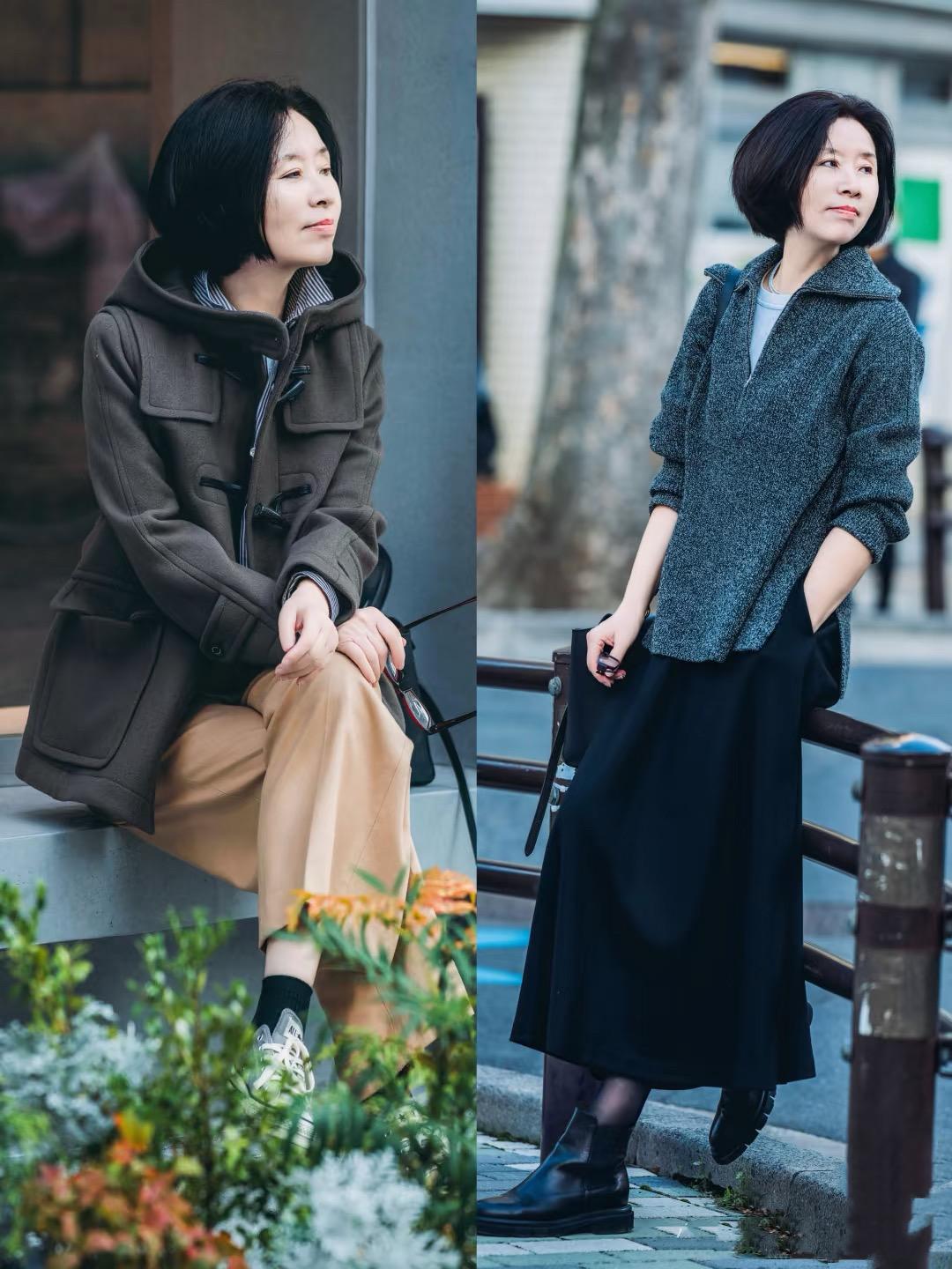 50+的年紀,可以穿得中規中矩一點。衣服不鬆垮、寬鬆自在還特別顯瘦。比如合身的針織衫、毛衣、帶着適當空隙感的外套,都很耐看。