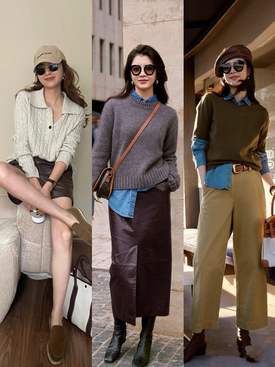 不同款式的針織衫,帶來不一樣的美感,日常的穿搭裏,針織衫配上寬鬆的皮衣外套,也是又美又颯。修身的黑色針織衫,更爲經典、也更加顯瘦。