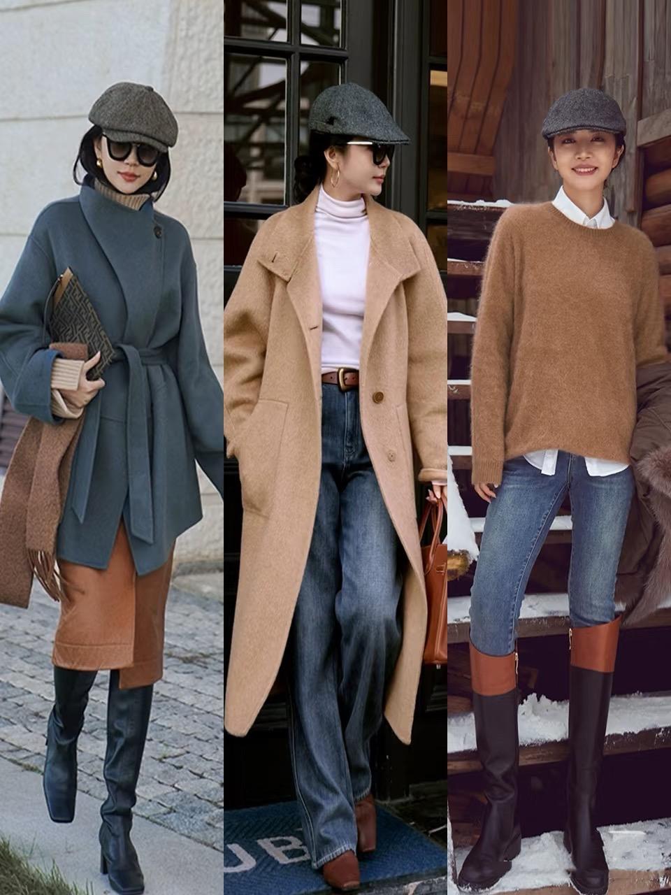 不管是經典黑色呢大衣、還是時髦的花灰色呢大衣、以及溫柔的燕麥色呢大衣,長款的版型都很提氣質。長款呢大衣搭配長靴,時髦又有範。