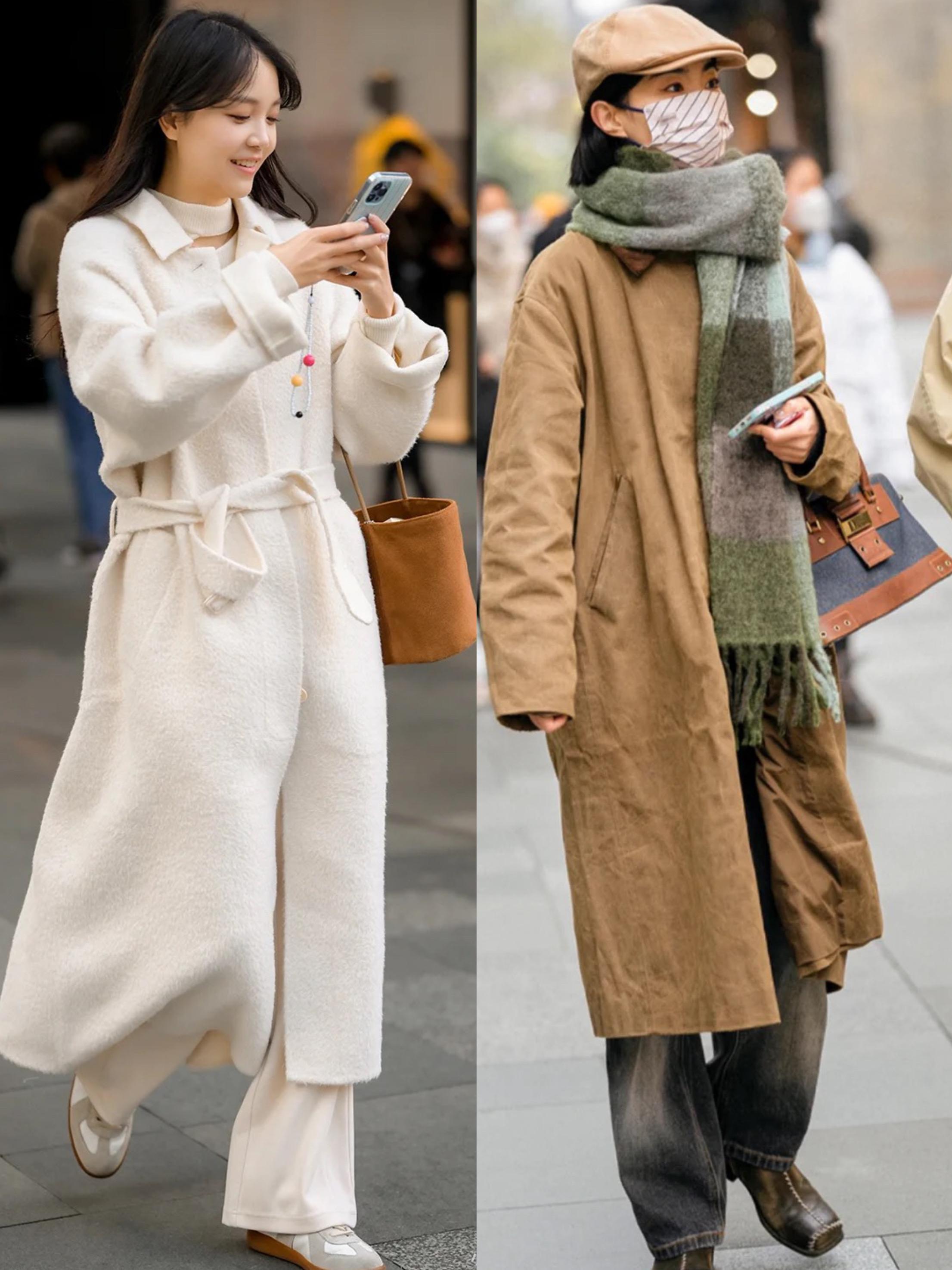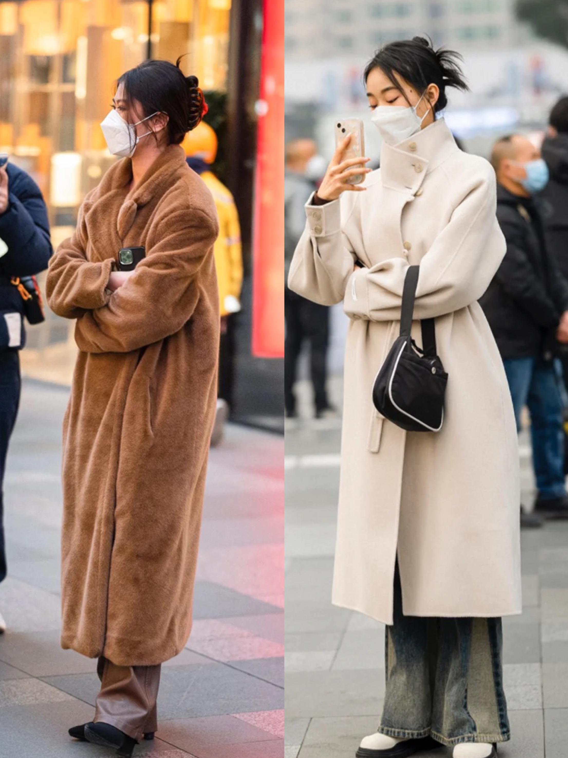 看成都街拍才明白:“大衣+長褲”正流行,時髦保暖、照着穿真美