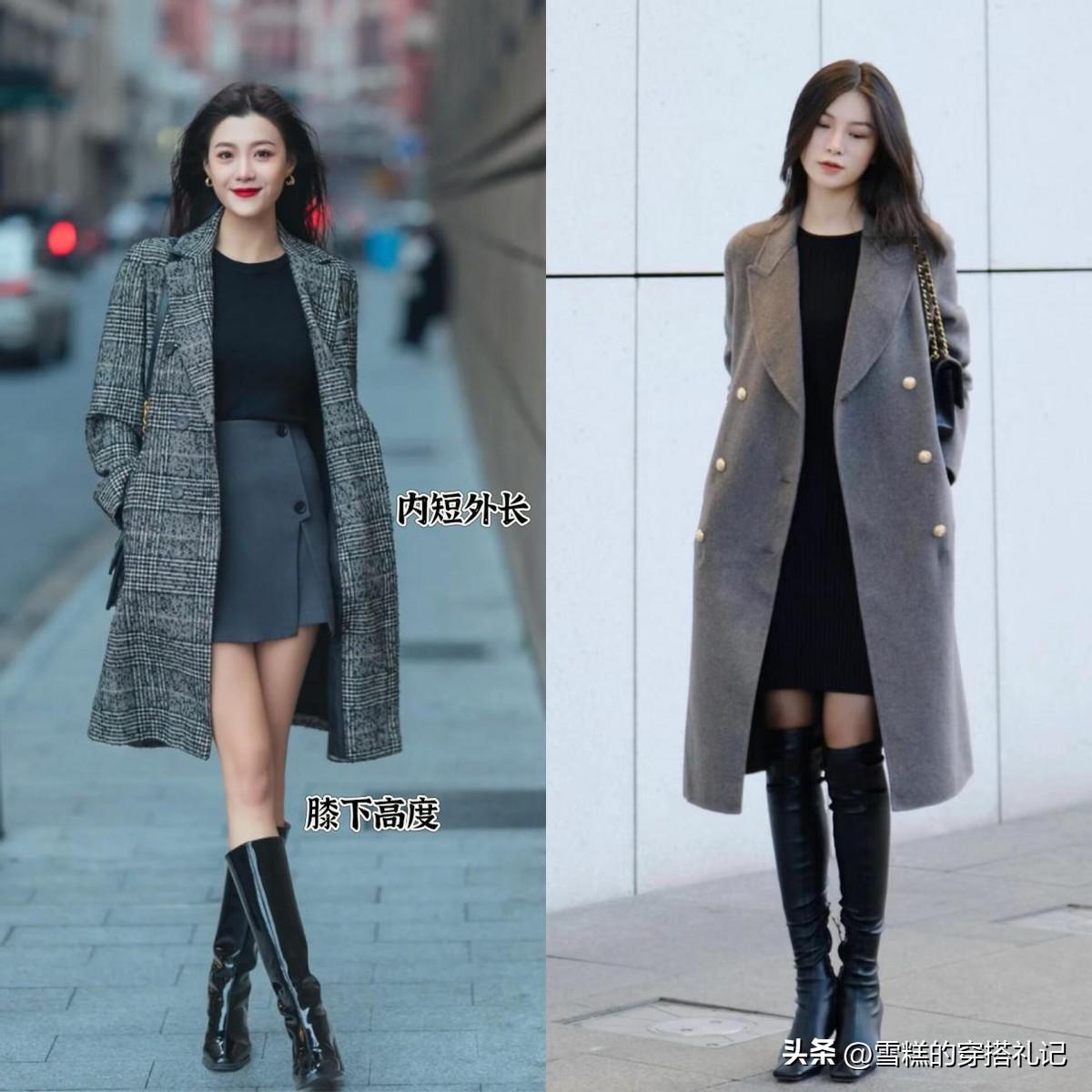 想要優化推行,就不要錯過高筒靴的搭配,小個子要選擇膝下筒靴,修飾腿型又顯高;高個子可以嘗試緊身高筒靴,配合上低跟顯腿細又長。