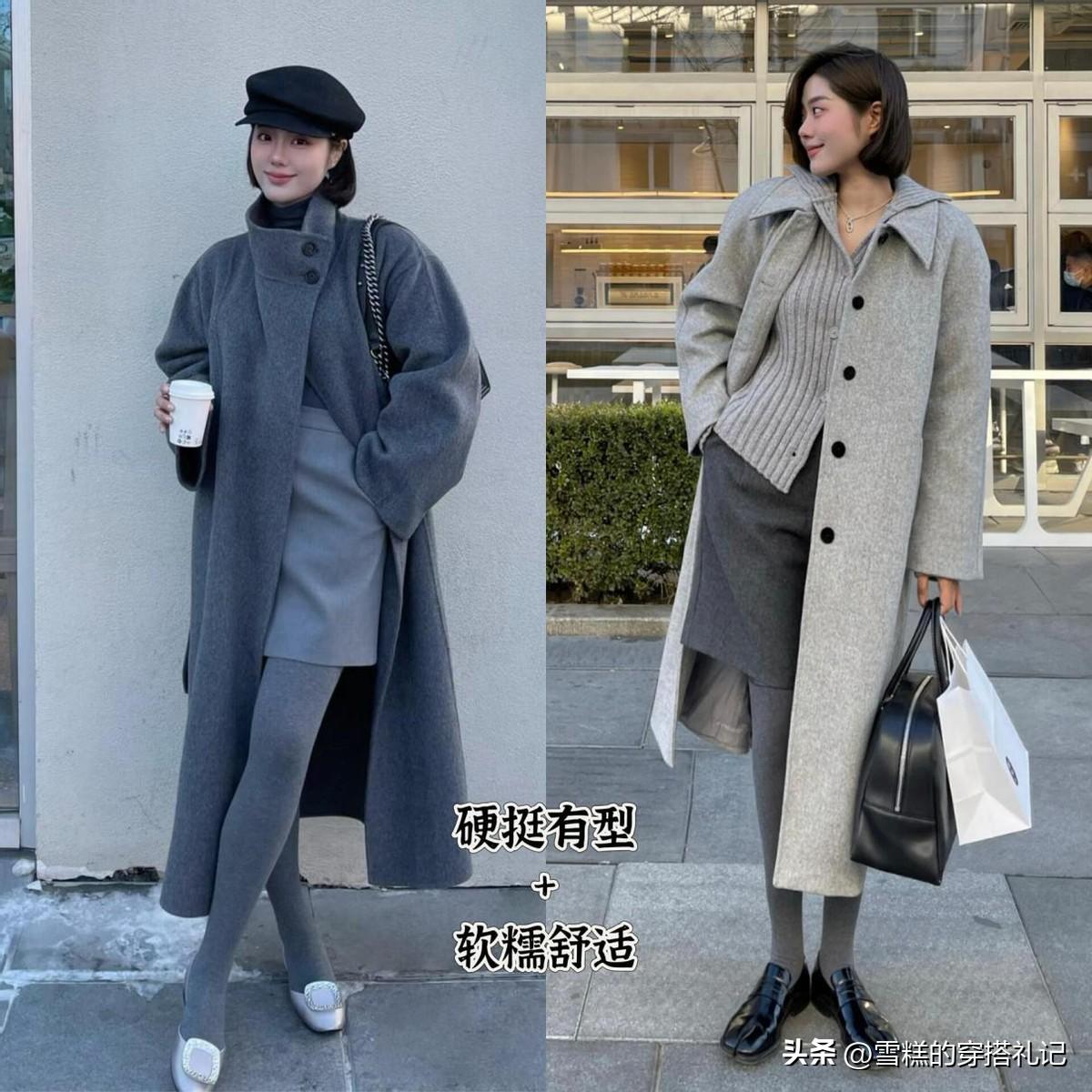 冬天穿大衣和褲襪,千萬不能用力過猛,挑選的款式都要簡約化,尤其是褲襪,無論是配色還是款式,都不能過於浮誇,只需要在材質上花點心思既可。