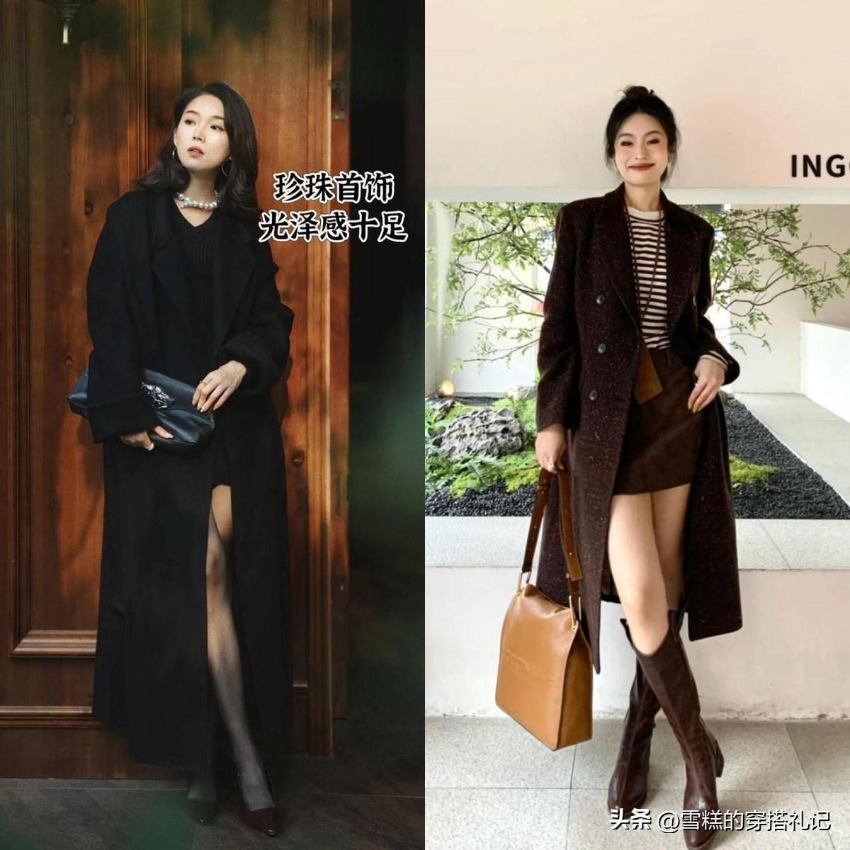 包臀裙和大衣的組合,可以將性感氣息嵌入骨子裏,但若是想要穿出高奢鬆弛的冬日氛圍感,配飾的挑選就很有講究,千萬不要披金戴銀,換成光澤感強的珍珠首飾,會更具貴氣感,再拎一款大容量包包,瞬間氣場全開。