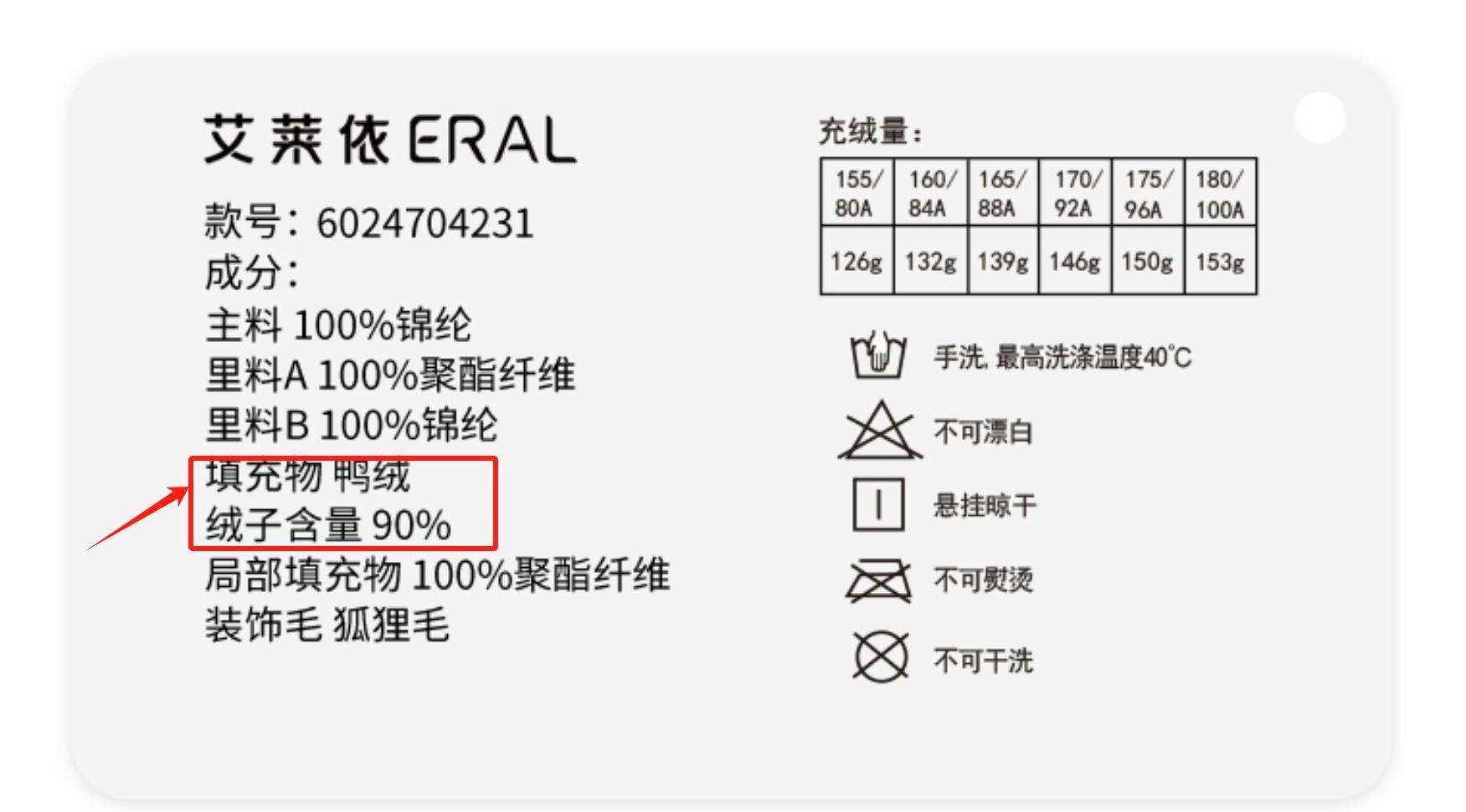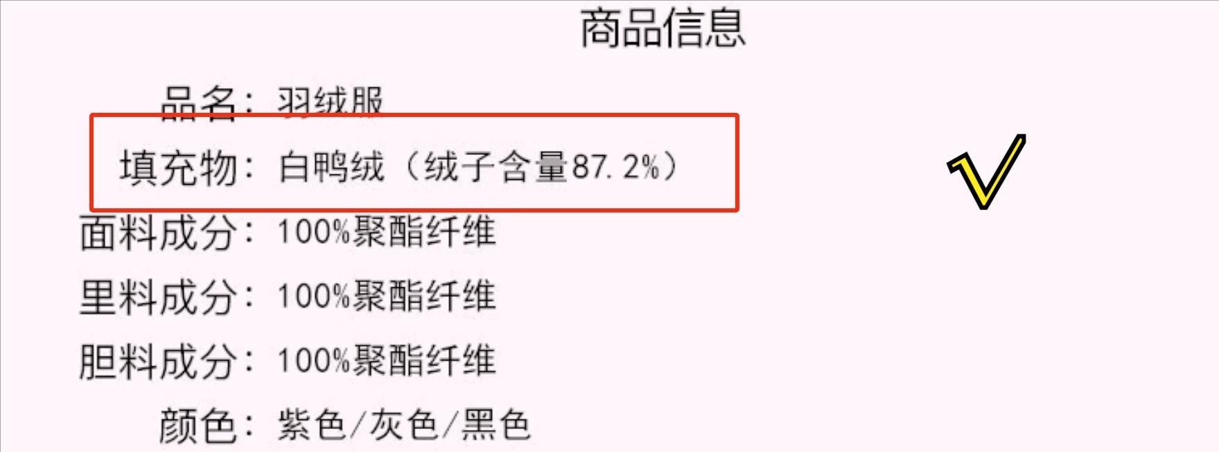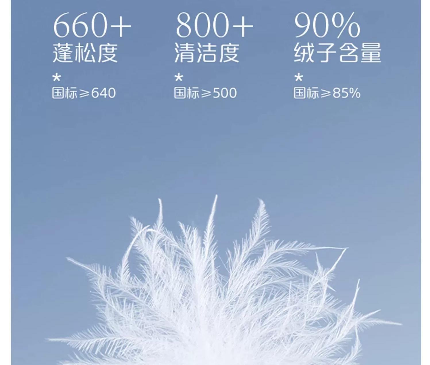 給寶寶們舉個例子:比如絨子含量 90% ,意思就是 100g 羽絨中,絨朵有 90g,而毛片有 10g。絨子含量是羽絨的重要指標,同樣批次的羽絨,絨子含量越高價值越大!