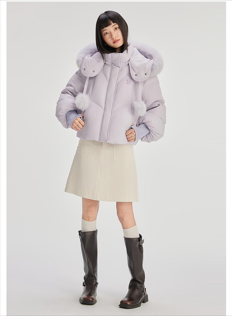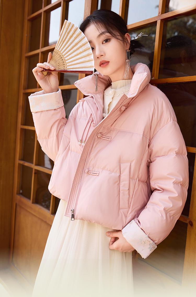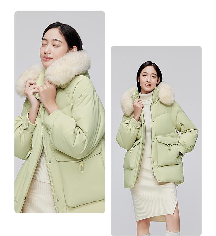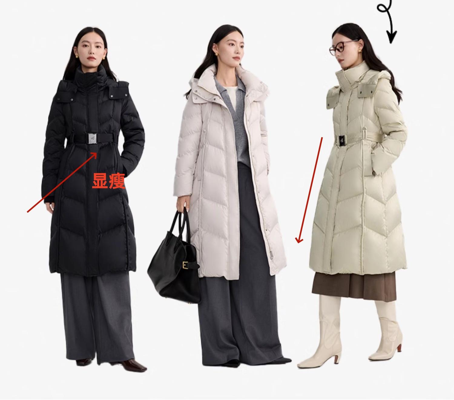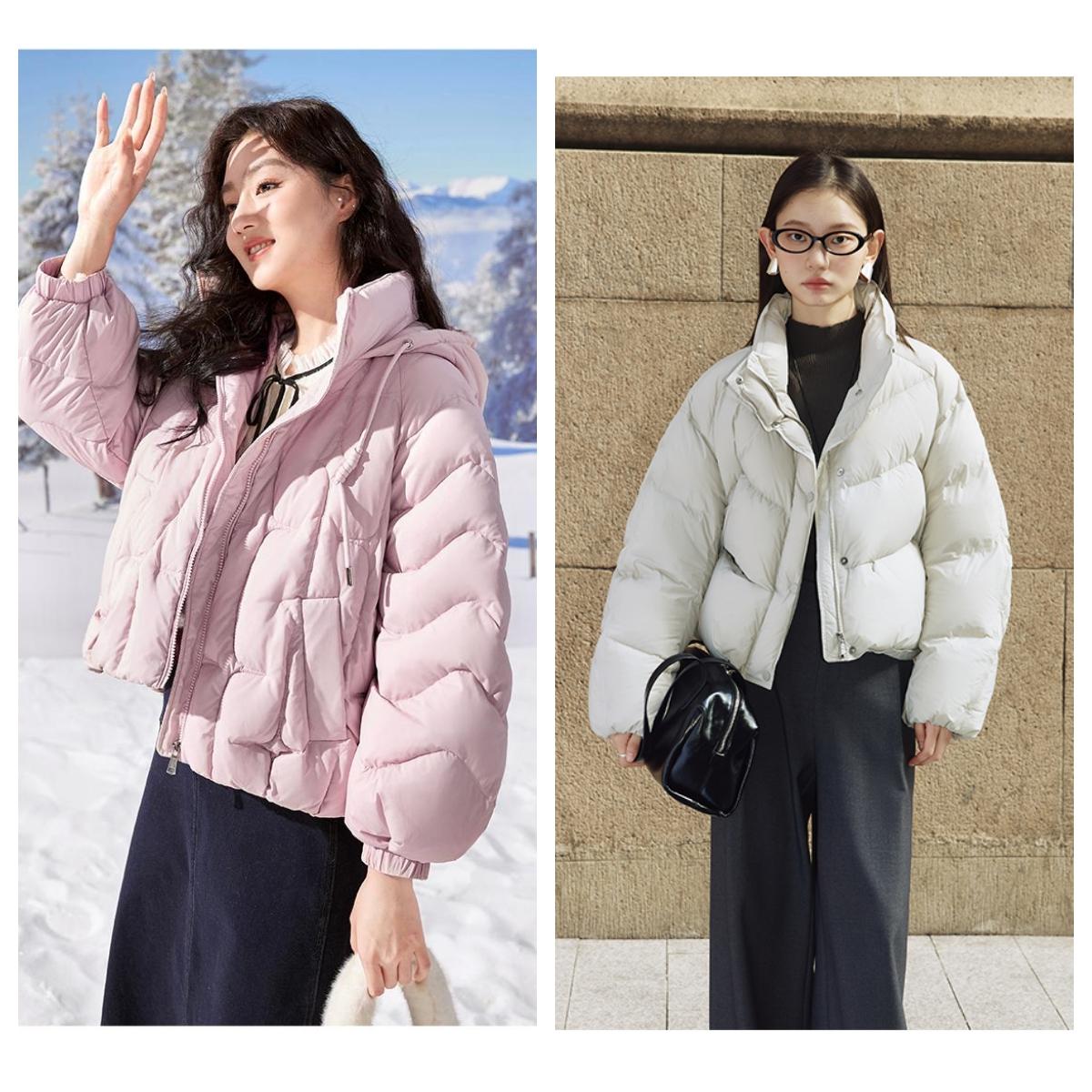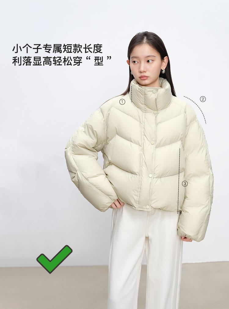 小個子根據自己的身高和體型選擇合適的長度,選擇短款羽絨服可以提高腰線,拉長腿部線條,中長款要選擇衣長≤100cm的款式,以達到最佳的視覺效果。