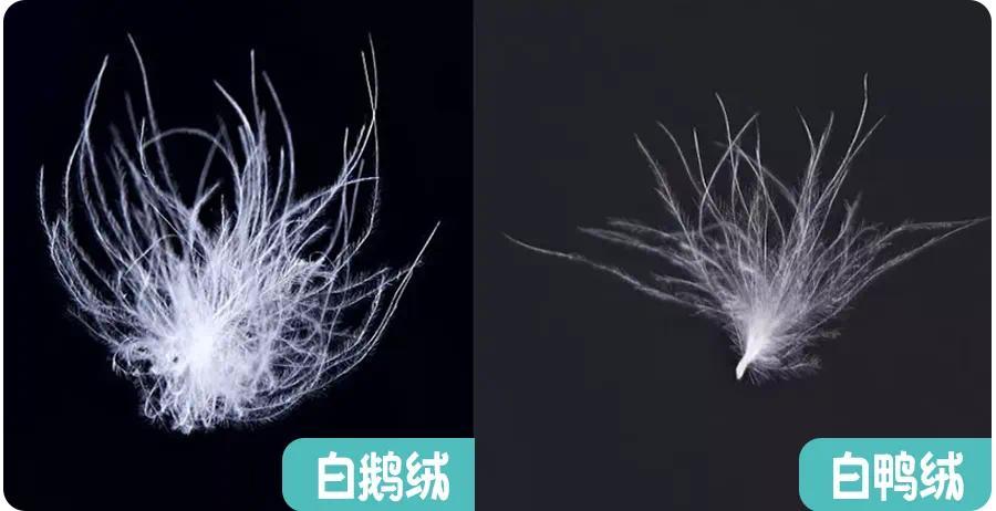 通過對比鵝絨的絨毛更長,蓬鬆度更高,因此保暖性能更好。鴨絨則相對便宜,但品質也有高低之分。