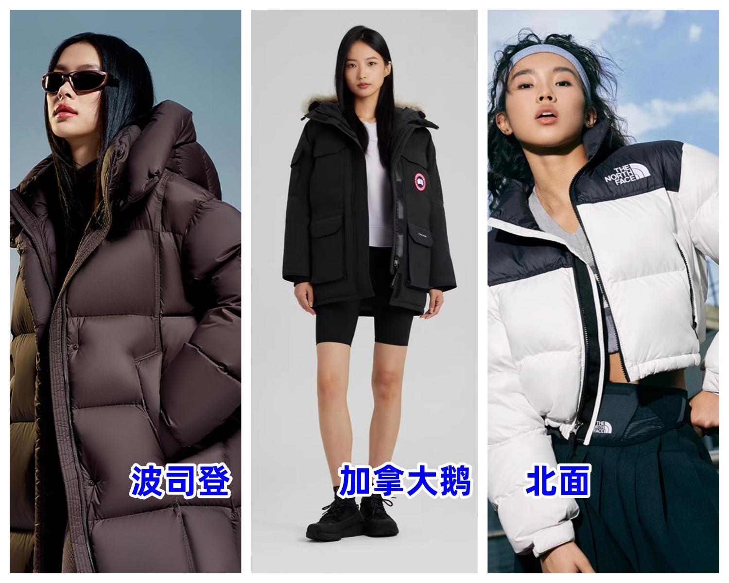 知名品牌的羽絨服往往會因爲品牌效應而定價更高,比如加拿大鵝、北面、國內有波司登、品牌的知名度、設計、市場營銷等都會影響最終的售價。