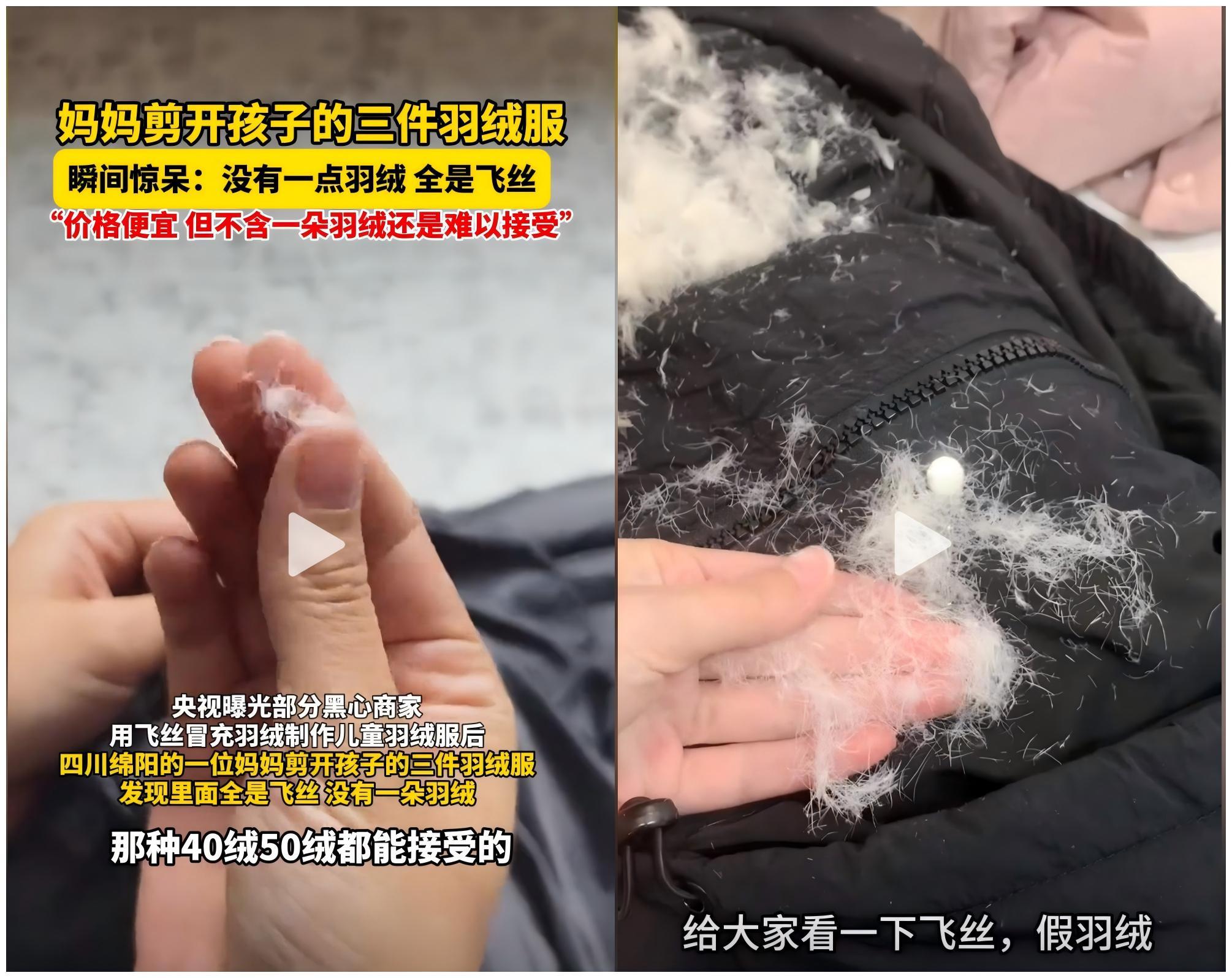 最近炒的比較火熱的新聞,大部分100塊左右的羽絨服都是用飛絲。