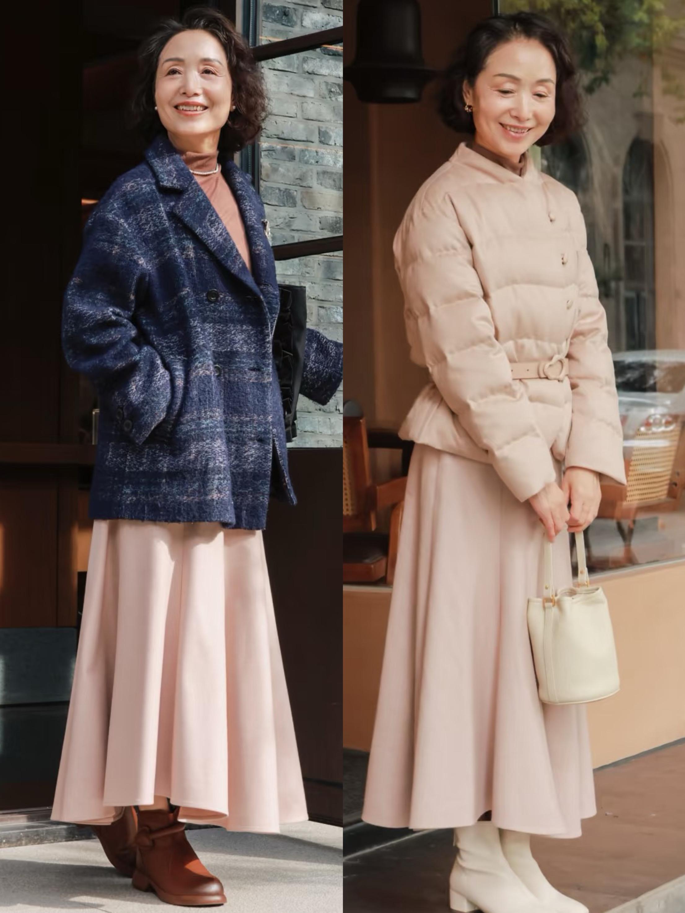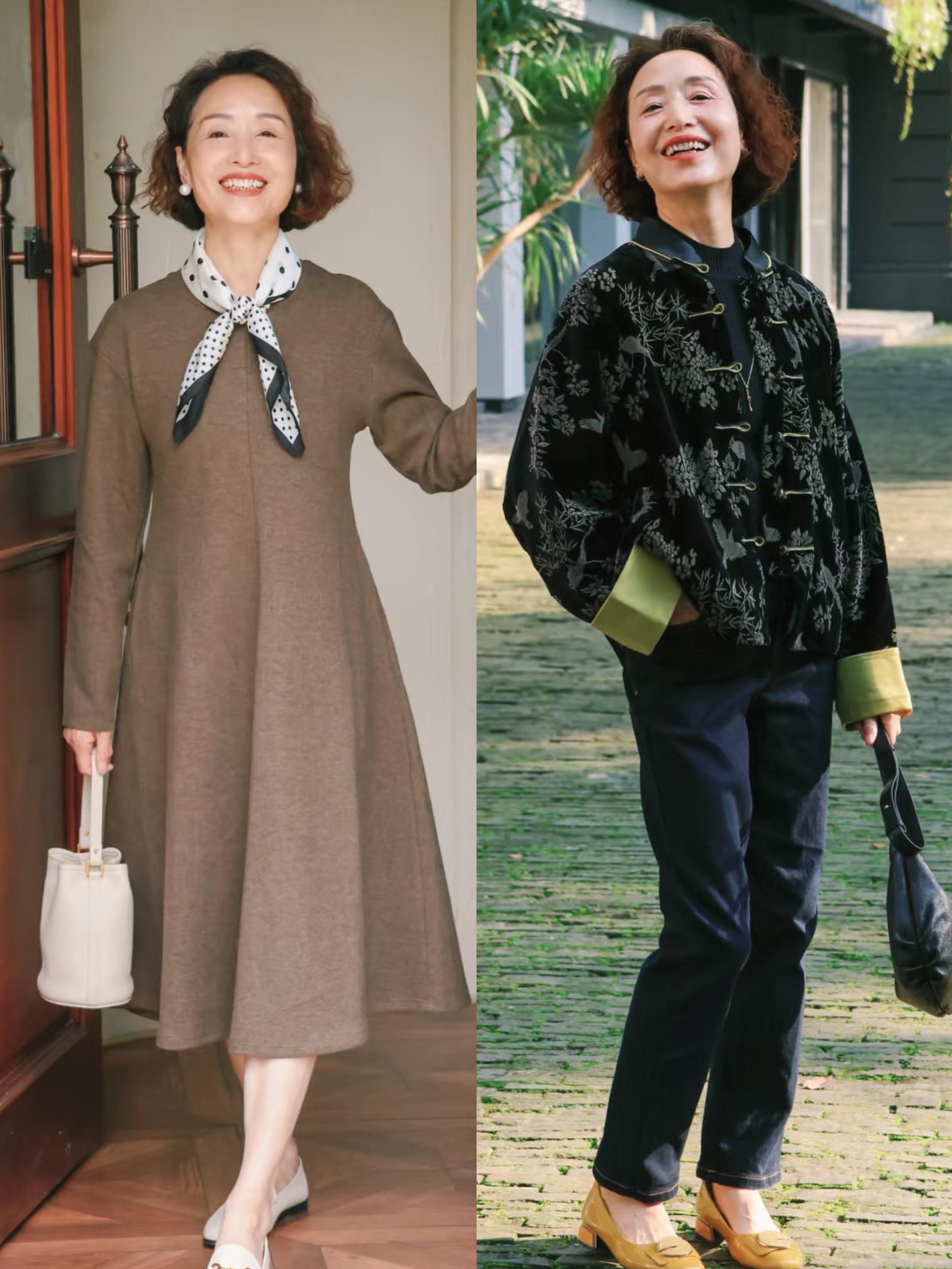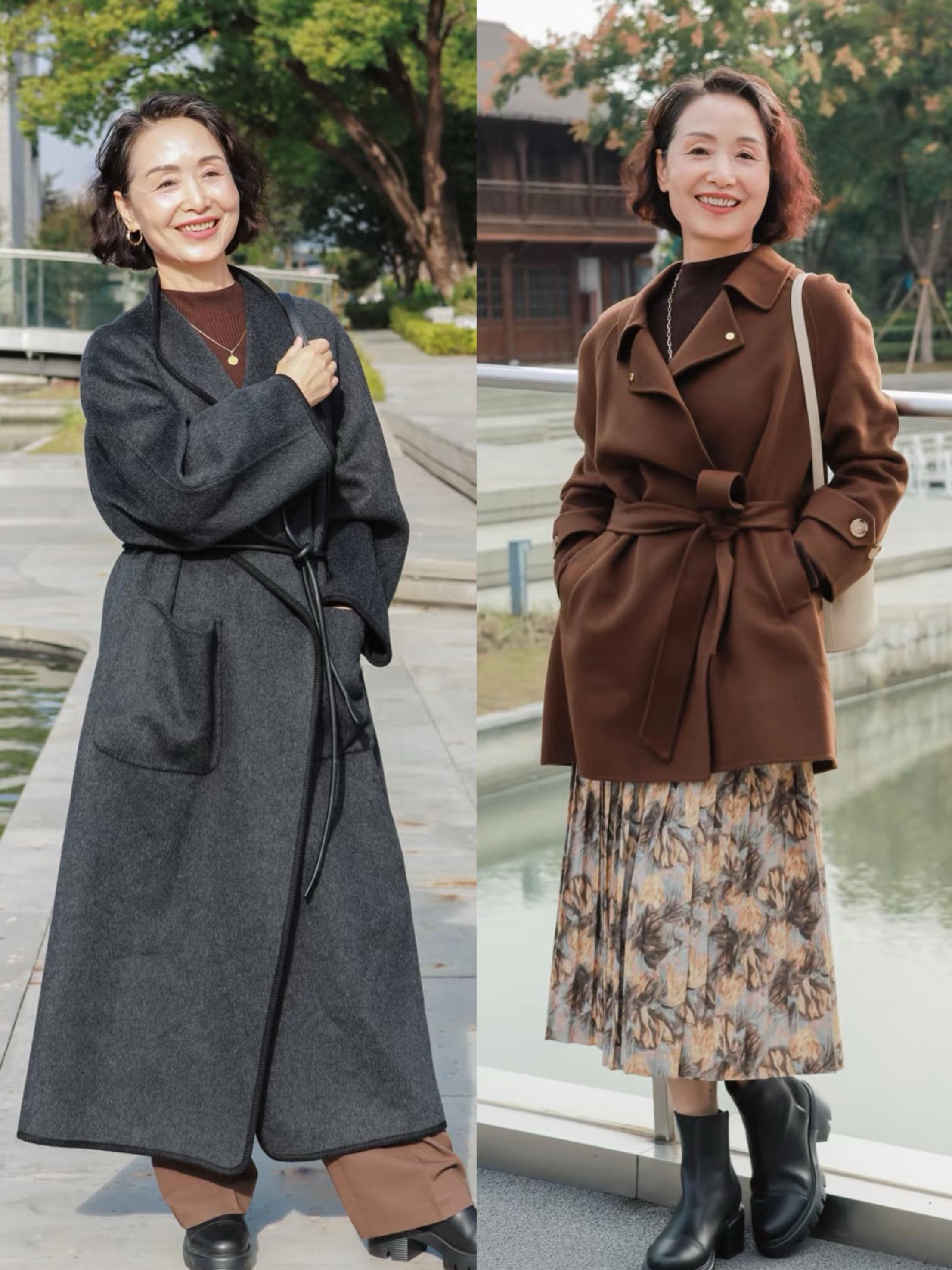 67歲的阿姨,從來都不穿老年裝。她更喜歡年輕休閒、高級顯氣質的衣服,冬天裏的風衣、大衣、直筒褲、樂福鞋,都可以穿得從容大氣。