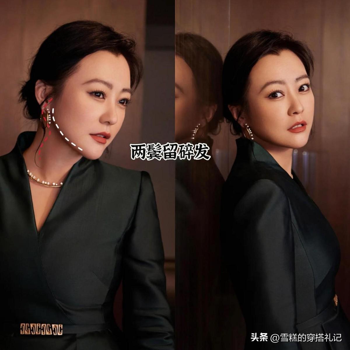 想要達到修飾臉型的效果,就可以像郝蕾這樣,選擇露額頭的斜劉海,或者可以通過中分、偏分以及三七分,成功的修飾髮際線。