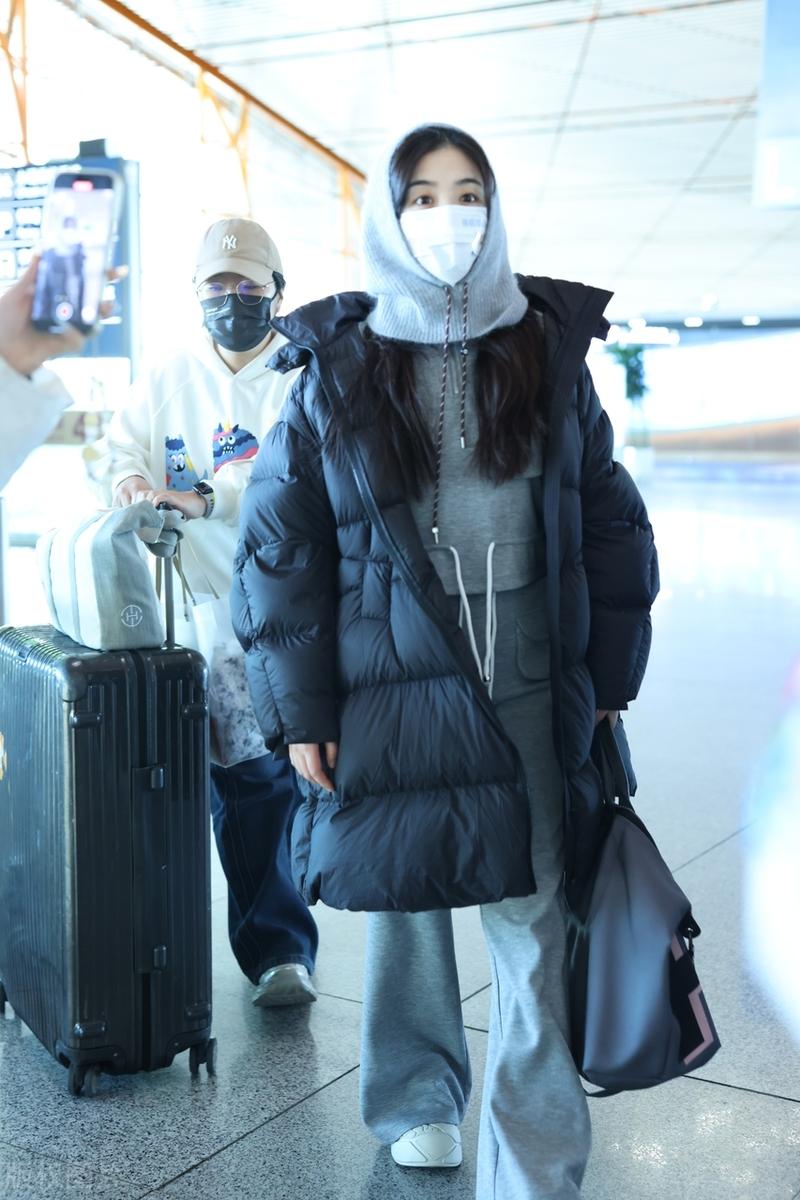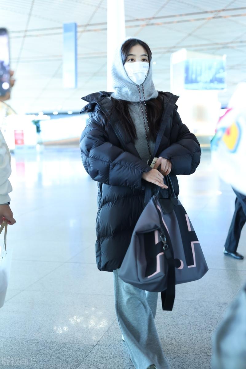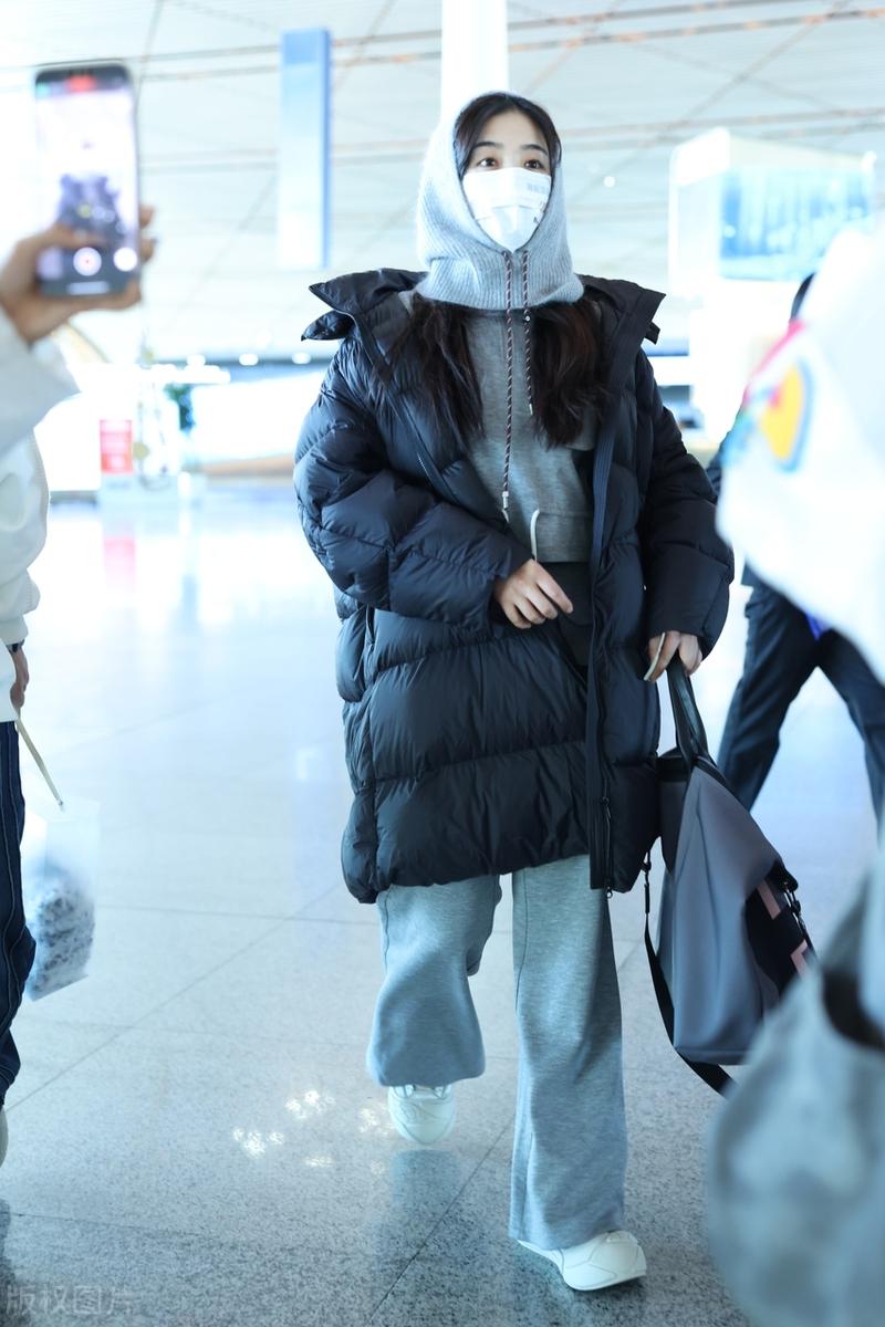 張含韻纔是小個子穿搭典範,黑色羽絨服+短款衛衣,可愛又顯高