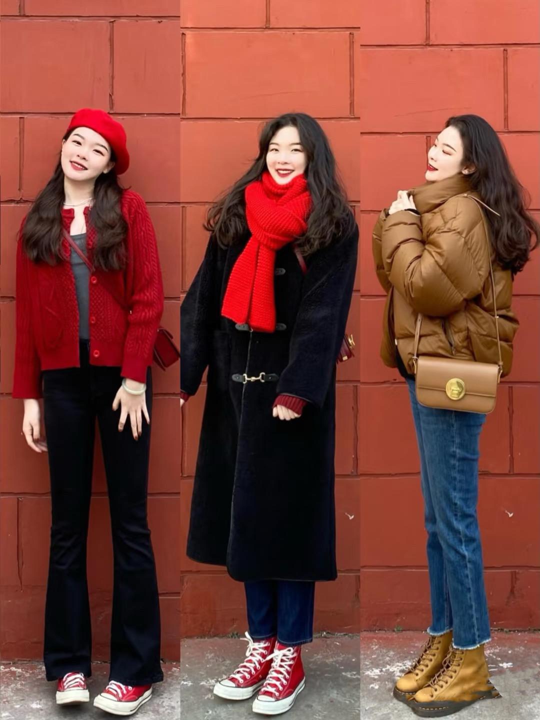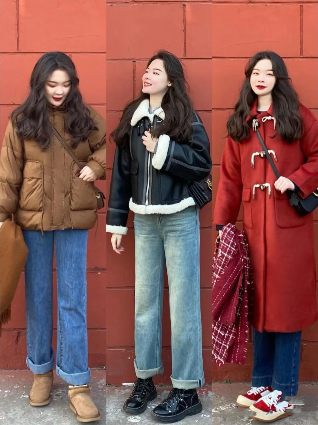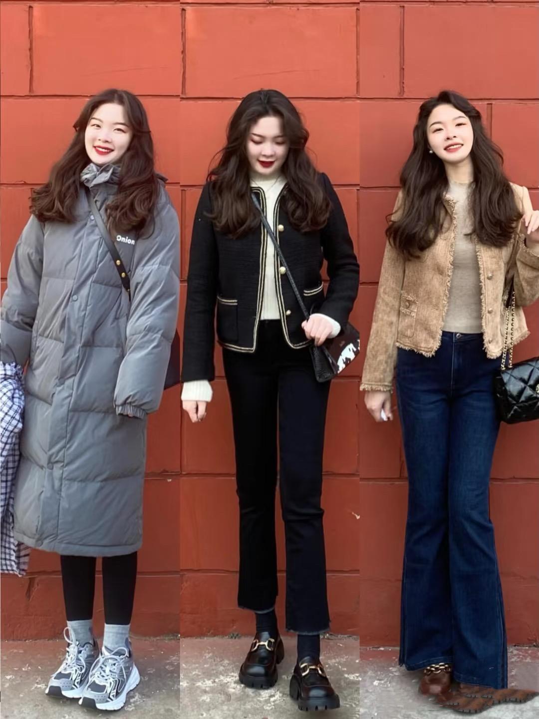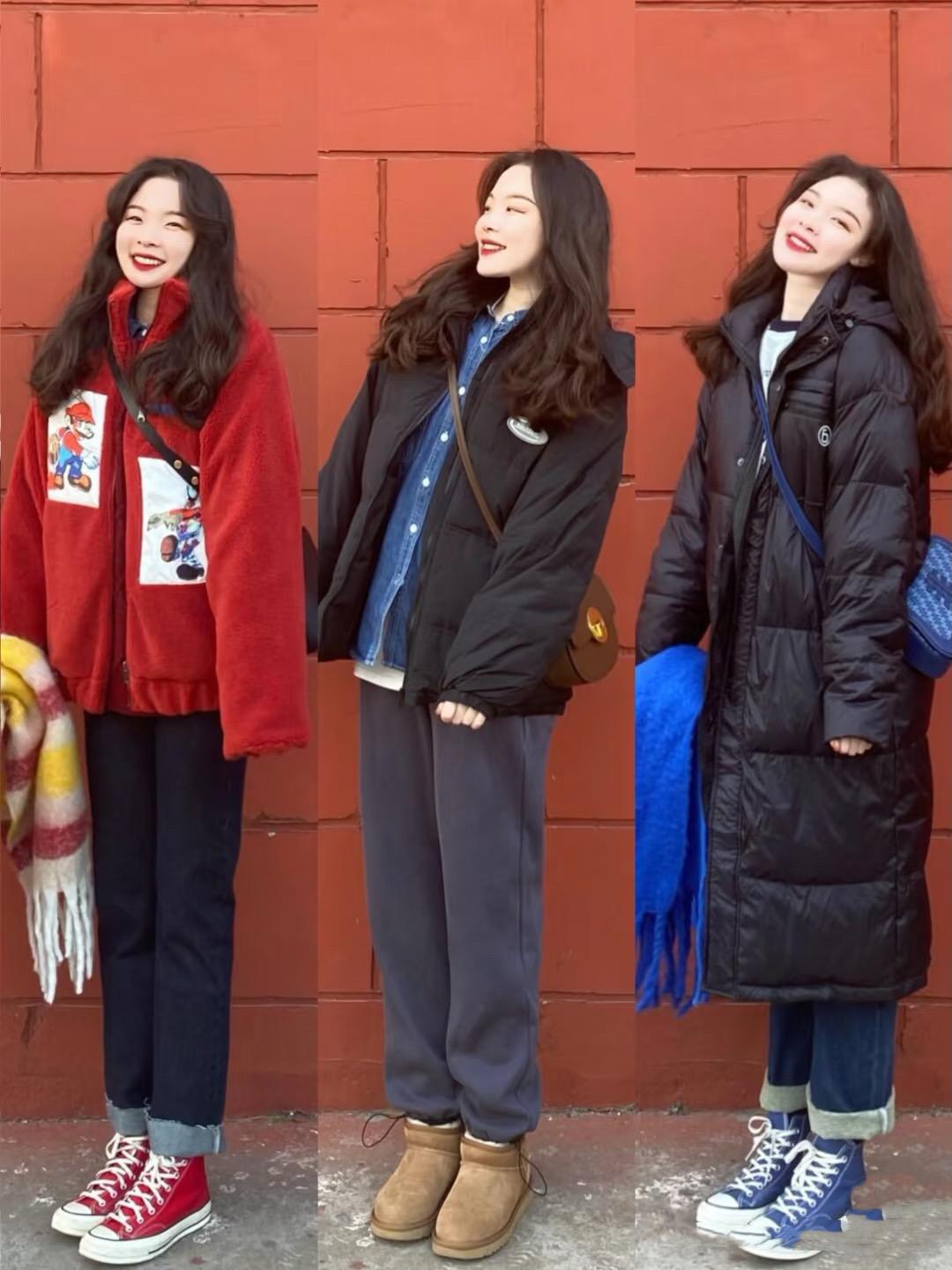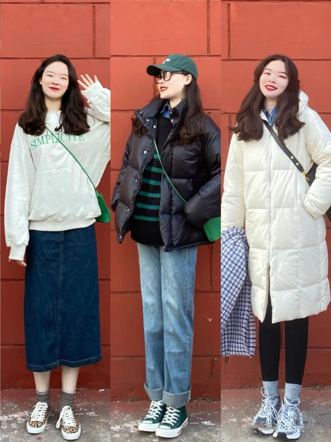 針織衫、羽絨服、直筒褲、厚底鞋,在她們的穿搭裏被廣泛的應用。尤其是短款羽絨服,厚實保暖又防風、一點都不壓個子。