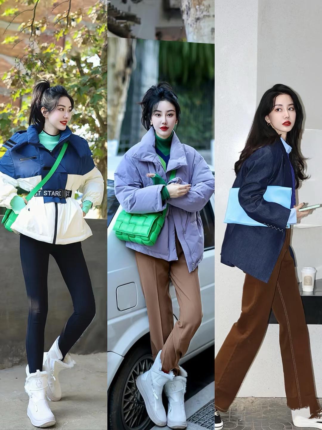 撞色款式的羽絨服,時髦又減齡