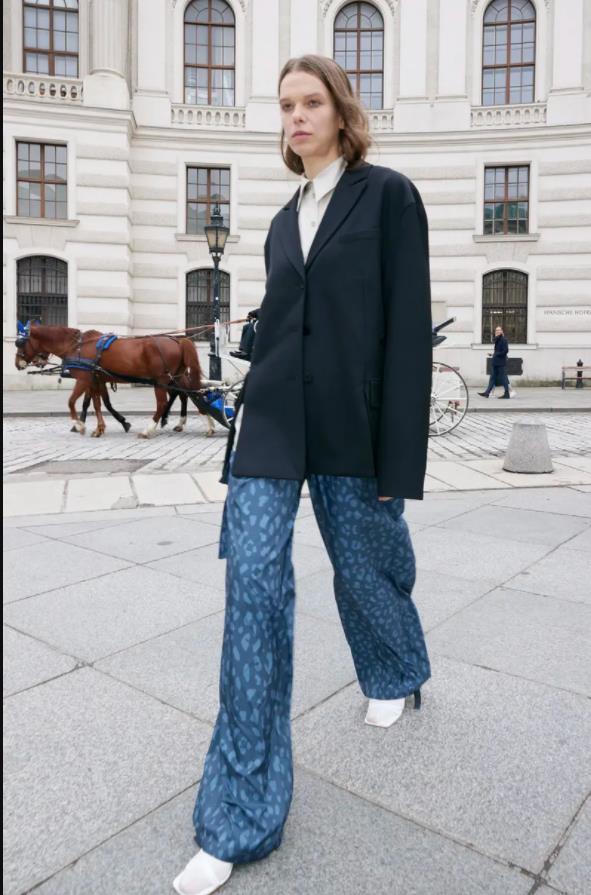 經典黑色西裝外套,百搭又時尚,版型是寬鬆的,可以減少穿出呆板感,內搭一件白色襯衫,視覺上顯得很乾淨利落。搭配一條緞面闊腿褲,輕鬆穿出優雅知性,腳下踩着一雙高跟鞋,大女人的氣場就展現出來了,既時髦又不失氣質。