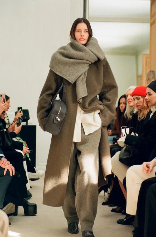 對於灰色的大衣,大概是沒有人會拒絕的吧?好像這個色調一直都很受歡迎,內搭一件深咖色的針織打底衫,這麼穿起來就有種很颯又不失氣質的美,下身再搭配一條黑色西裝闊腿褲,視覺上看起來實在是太顯瘦了,記得將上衣的內搭塞進褲子裏面,又顯得利落和率性,也盡顯高級與女性的優雅。