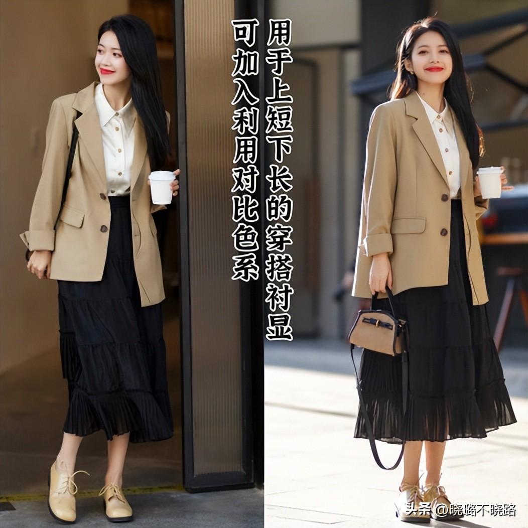 ⑴ 西裝搭配---將基礎色系+長裙