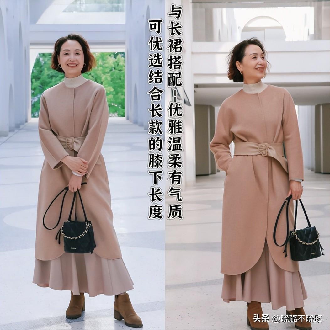 建議各位中年階段的女性在秋冬季節當中的時候,你的長裙系列還是要優選像長款大衣這樣的單品。兩者單品來進行疊穿的話,那麼在其長度上最好都是膝蓋以下的設計並且兩者疊穿搭配,也有長短不一的參差感所體現出來喲,對於我們的比例狀態和整體的穿搭美感都會比較具有優勢。