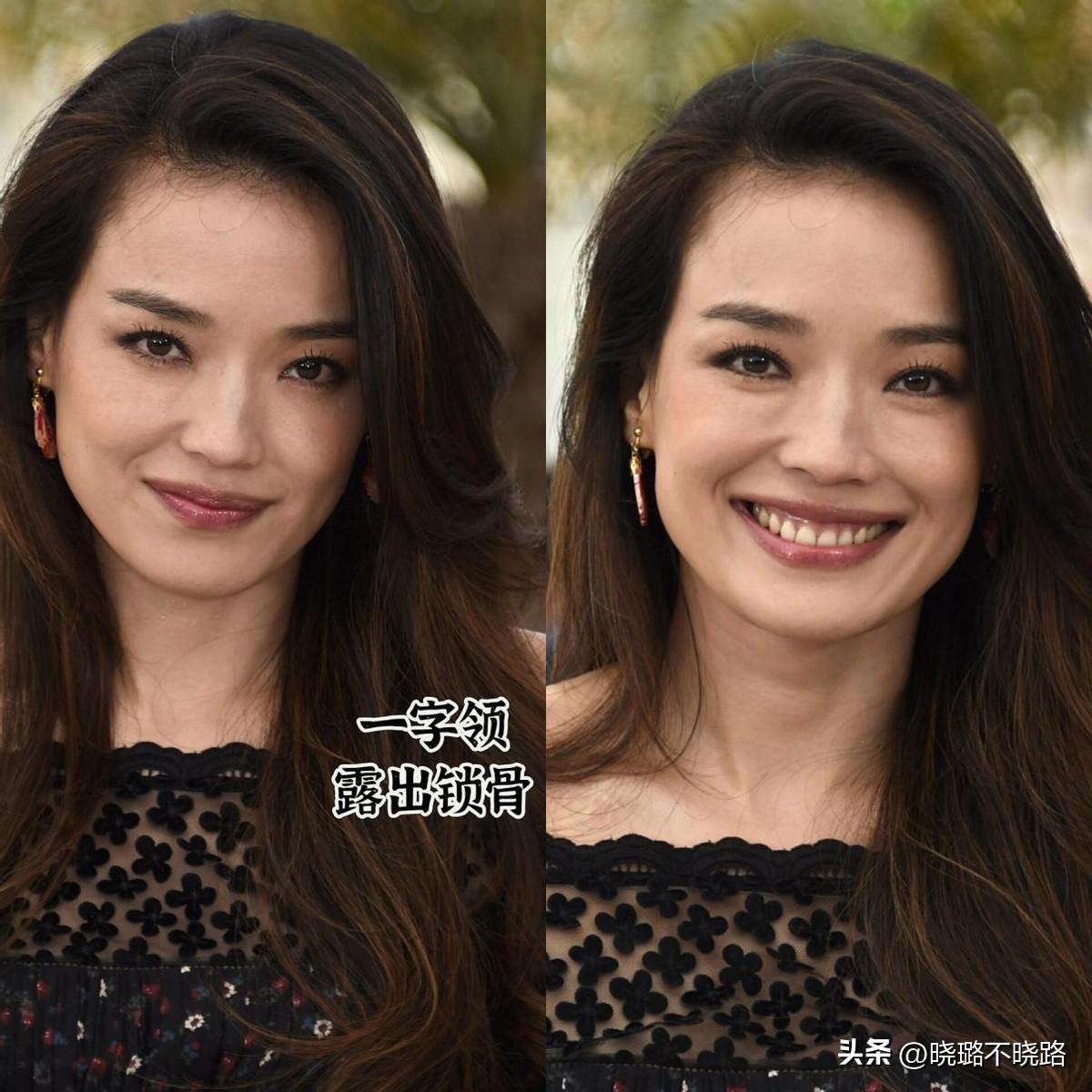 面部鈍感強的女人,不適合穿領口太高的衣服,否則會顯得臉更大,而且還會有土味感,在大多數情況下,舒淇都特別喜歡穿露鎖骨或肩頸的衣服,比如一字領、V領、斜領或者低圓領,都是很好看的。