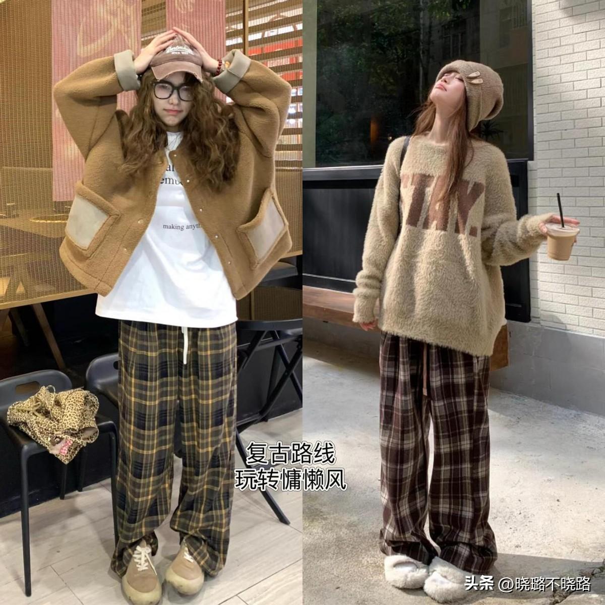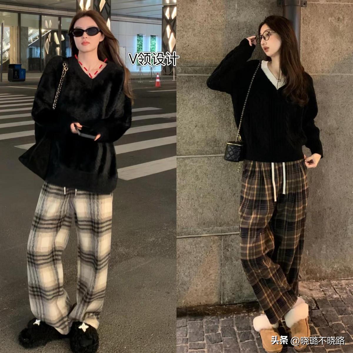 比如黑色的V領毛衣,更毛呢格子褲堪稱絕配,在色彩上雖然沒有特別明豔,但是卻可以通過格子元素打破單調感,再踩上一雙加絨半拖鞋,舒適度拉滿。