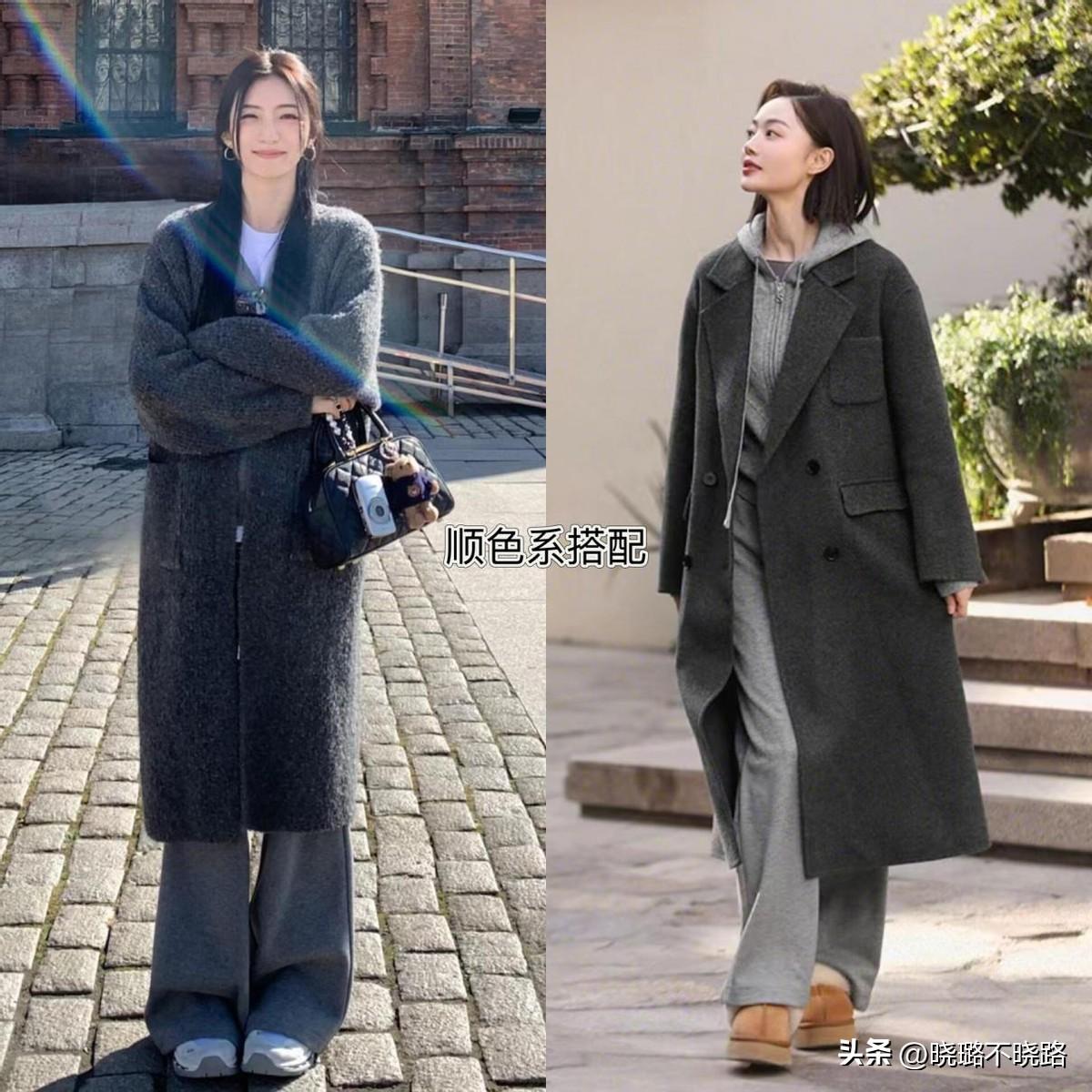 長款外套和糯米褲的組合,再配合上順色系的搭配方案,便可以輕鬆拉長身形線條,這種穿法安全感爆棚,並且十分保暖,穿出街氛圍感也能拉滿。