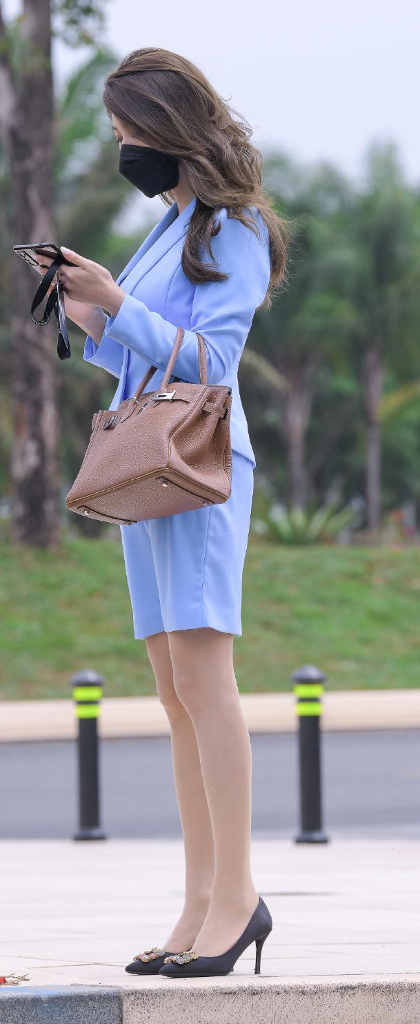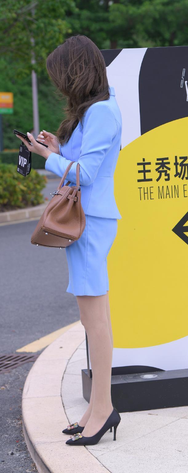 小姐姐藍色職業套裙,彰顯職業女性的魅力和韻味,顯得飄逸灑脫