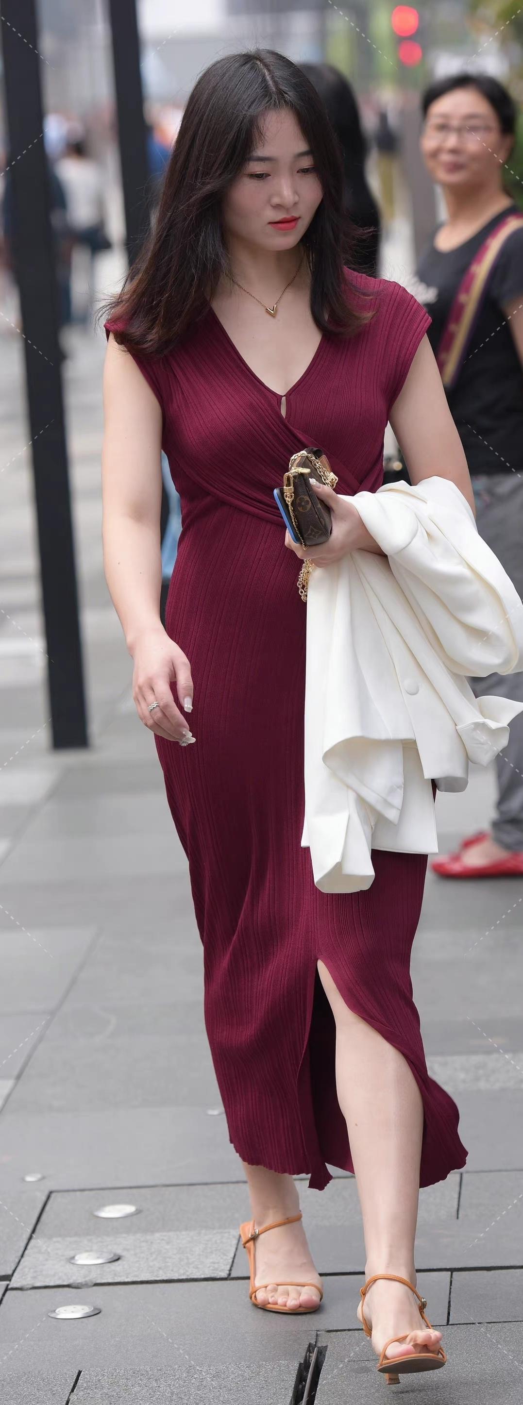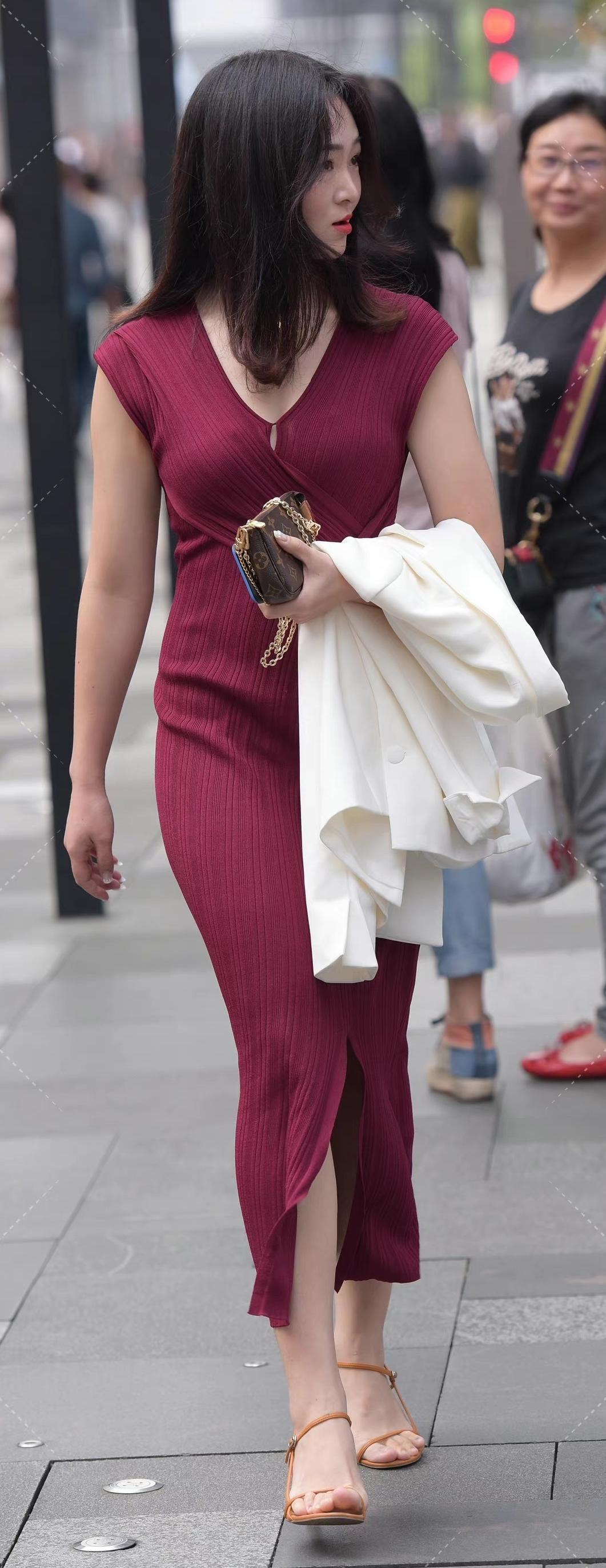 街拍:微胖小姐姐,一襲長裙,盡顯時尚都市麗人氣質