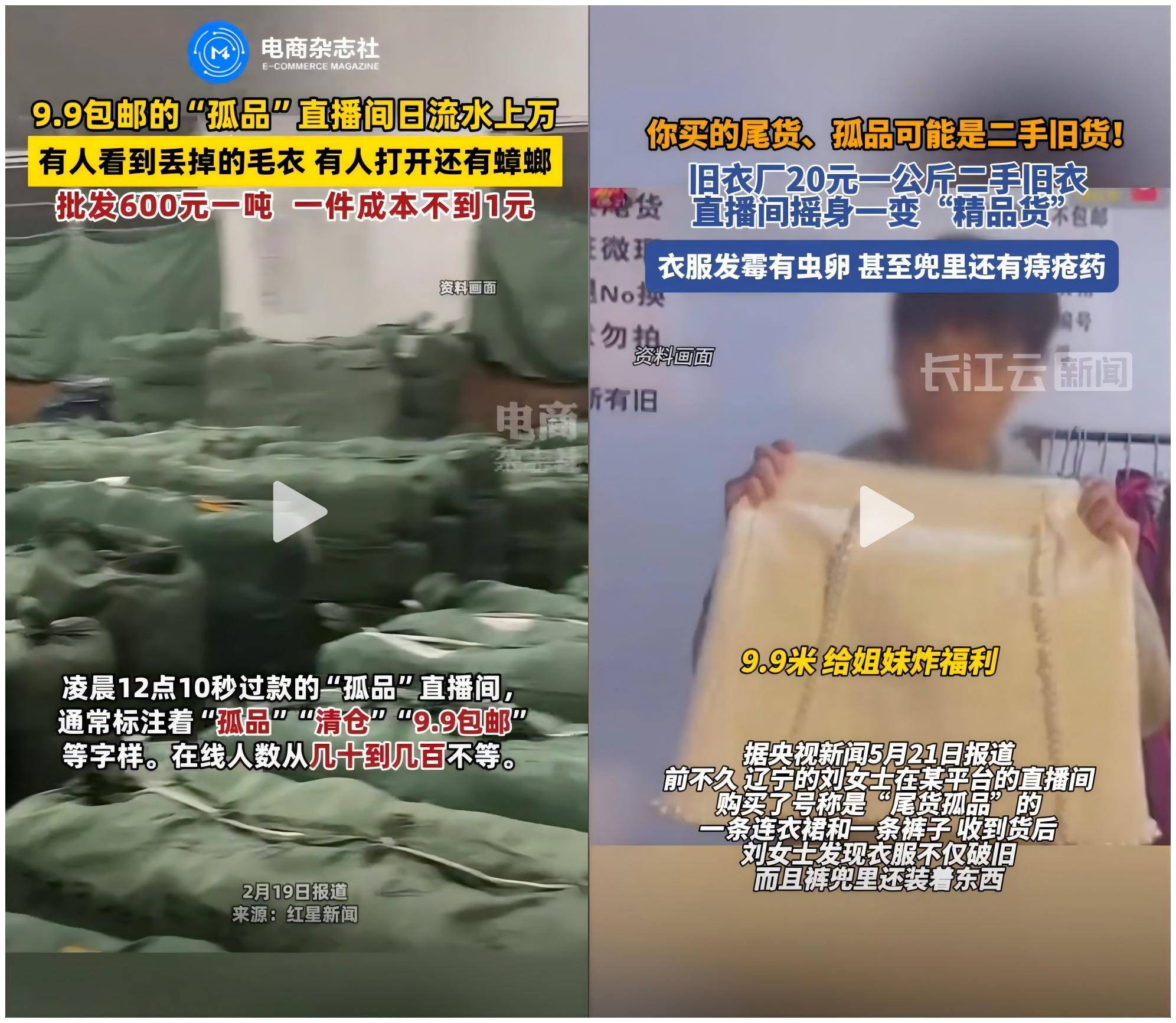 更重要的是,這種清倉類的直播間,賣尾貨就把衣服燙一下,直播間背景燈一打就不同。把商標吊牌一掛,就感覺像新的一樣,在直播間裏面是看不出來。過款速度非常快,你來都不及思考可能就被話術吸引就下單了。這時候你要擦亮雙眼,尾貨就是尾貨,舊貨就是舊貨,兩者不能混爲一談。