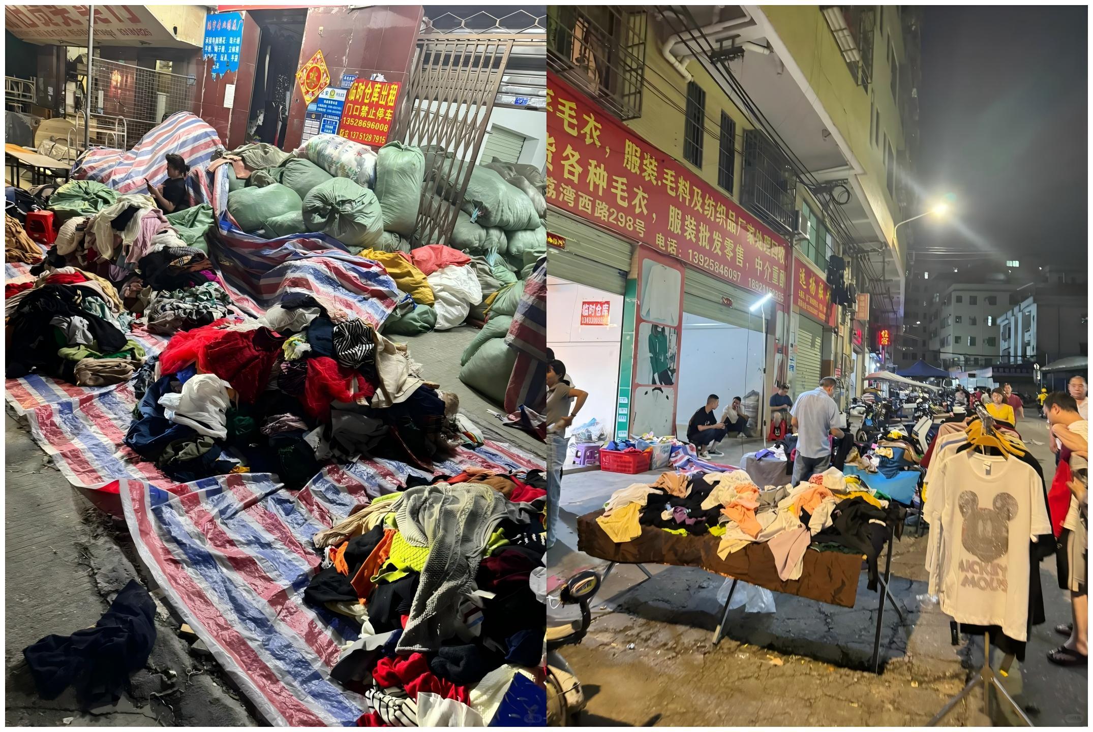 全國各地的代理商通過上門回收、舊衣服回收箱等各種方式將舊衣服彙集起來,再賣到舊衣回收廠。根據品相好壞先分揀出A貨和B貨,再從A貨裏挑揀出所謂的精品貨。要麼賣到電商直播間,自己掛上吊牌,然後說是孤品,一樣一件,不挑尺碼的。要不就是地攤夜市去賣,大喇叭喊:特步、361度斷碼清倉,100元3件的那種。