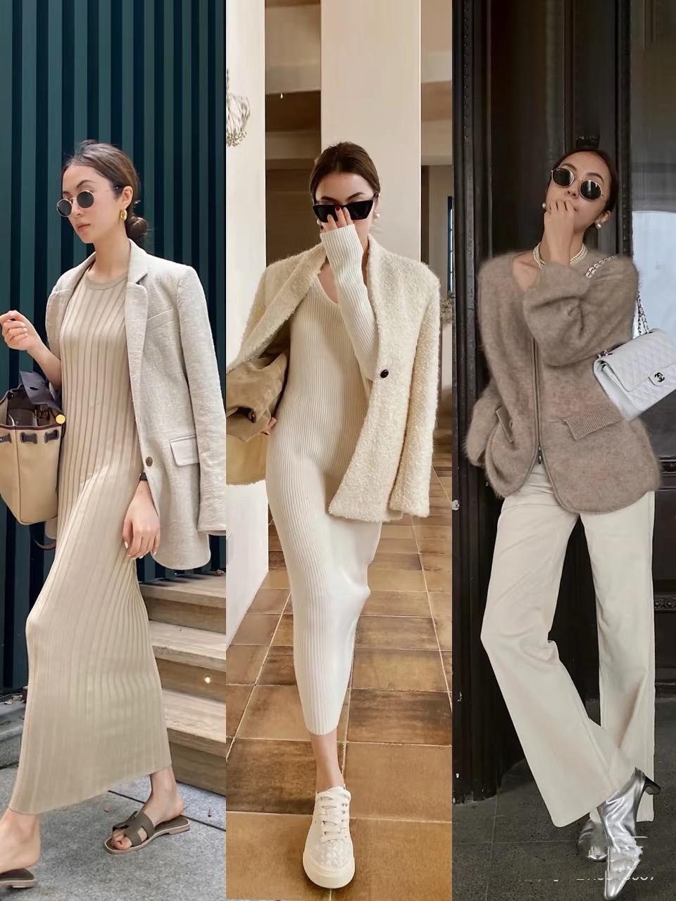 如果擔心暗色系太乏味,我們可以在奶棕色中多加入一點白色系,這種更乾淨又溫柔的奶咖色,穿起來就會特別減齡。