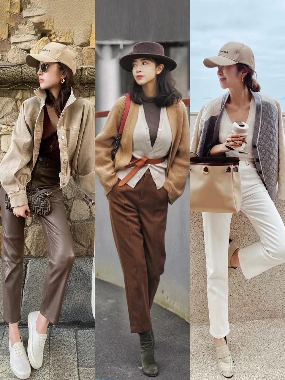 當我們選擇奶咖色單品的時候,也可以嘗試利用帽子、揹包、鞋子來凹造型。比如奶咖色帽子,就很提氣色,可以凸顯冬季穿搭氛圍。
