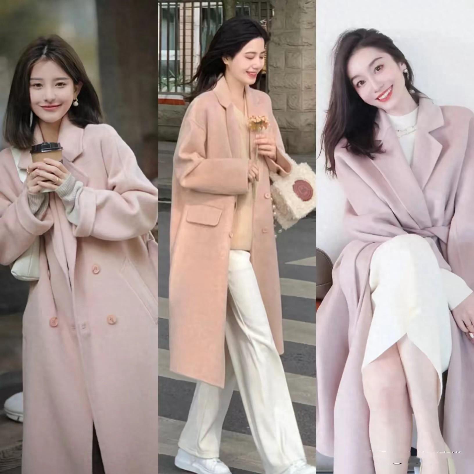 尤其是裸粉色的長大衣、溫柔軟糯,就像盛開在冬日裏的花,讓人心裏暖暖的。配白色的闊腿褲來穿,簡單大氣、毫不拖沓。