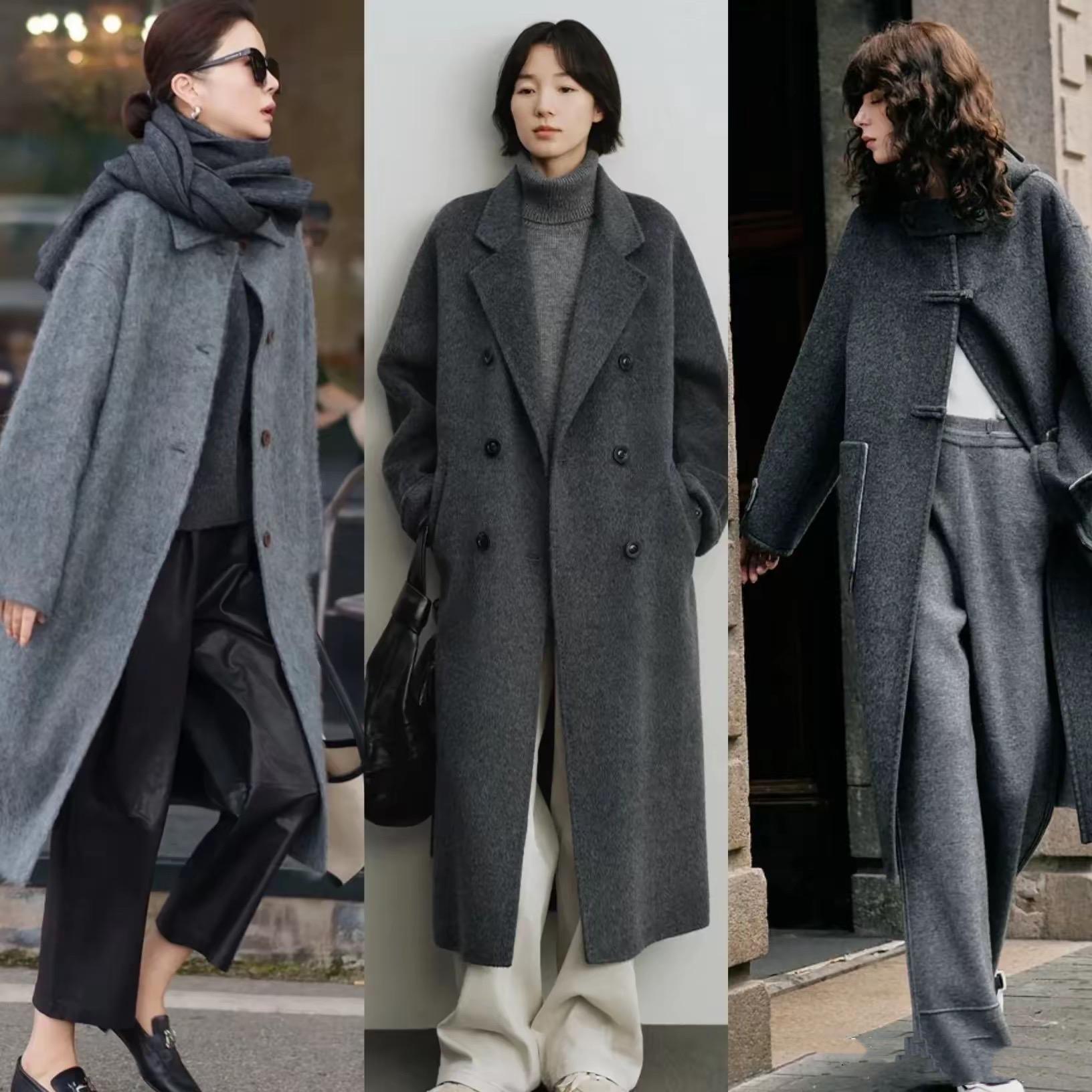 灰色系的長大衣,更加高級提氣質。想要營造高級美,可以用灰色長大衣來搭配同色系闊腿褲。高腰的灰色闊腿褲,大氣又拉風,還特別修飾身材顯腿長。