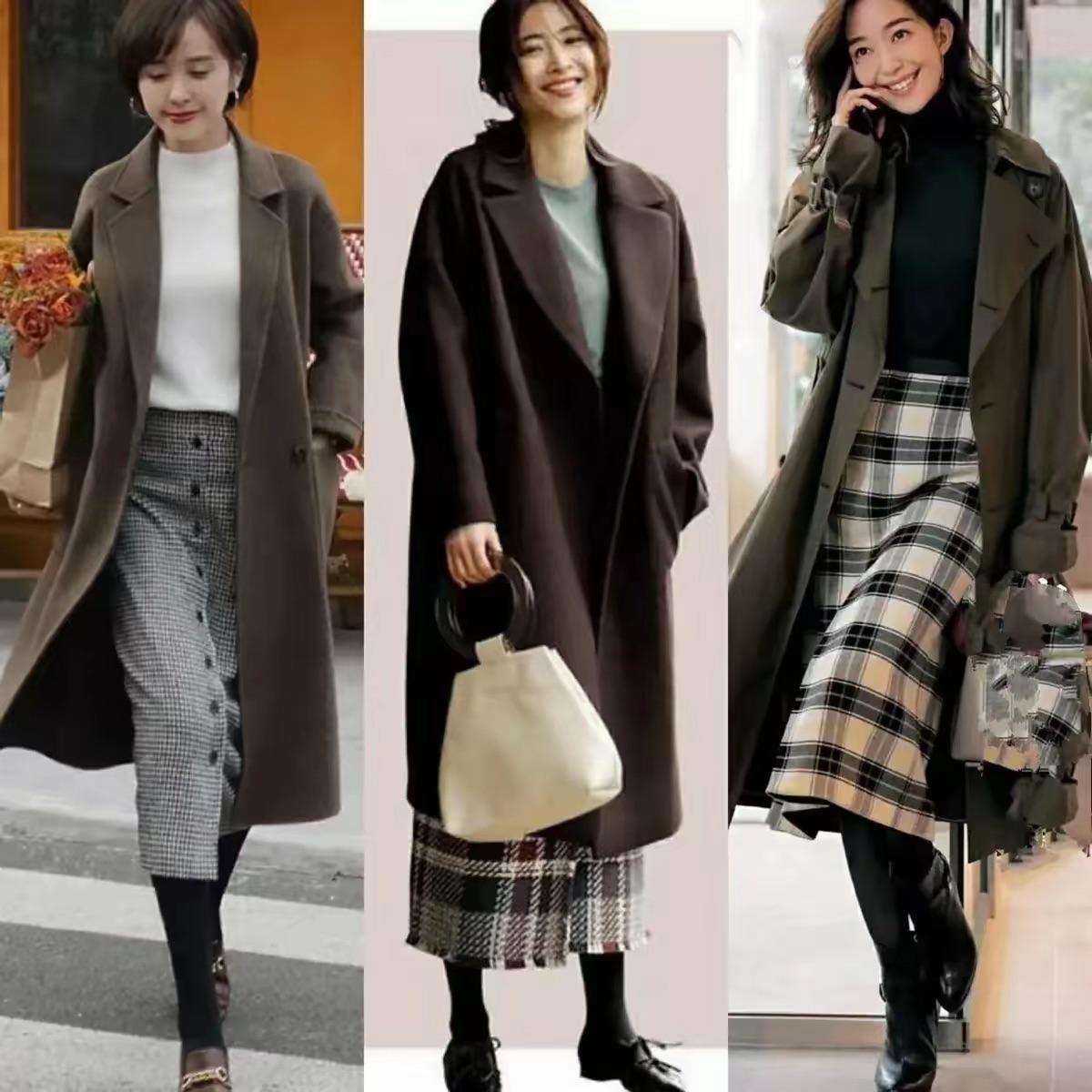 喜歡那種溫柔體面的美,我們可以選擇長大衣來搭配格子半身裙。寬鬆的長大衣,可以配復古風的格子半身裙,很時尚也很有女人味。