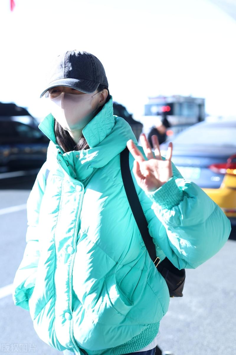蔣欣終於換風格了,穿綠色羽絨服戴鴨舌帽好減齡,瞬間美回20歲
