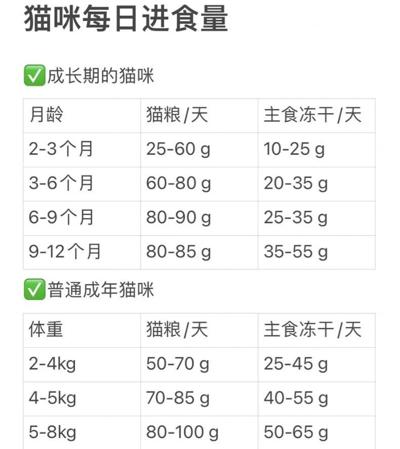 貓咪一天喫多少完全是根據貓咪的體重來劃分的,從幼貓到成年貓,一天所需的貓糧存在一定的差距。