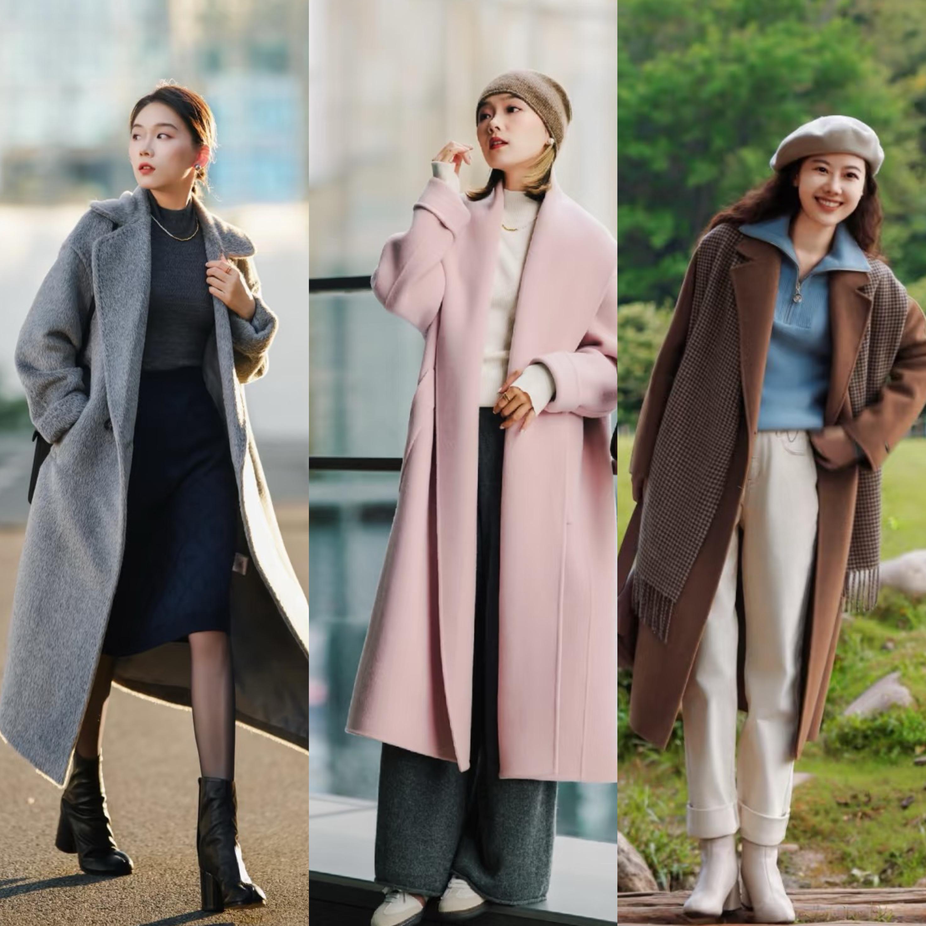 長一點的大衣,可以選擇灰色、粉色、棕色、黑色、白色,相對經典高級且耐看的顏色。長款大衣,配上短裙、直筒褲都很利落,時髦度也在線。