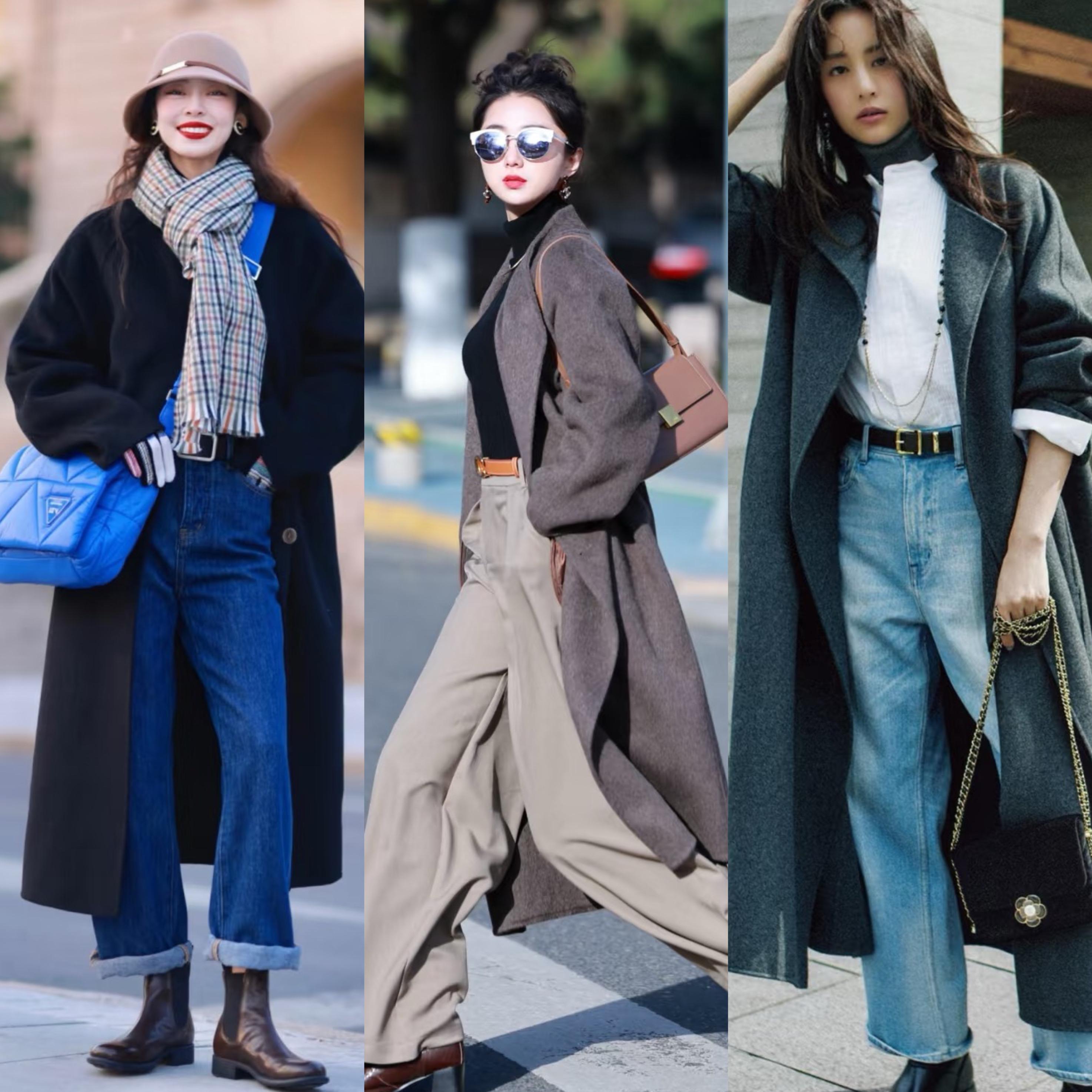 直筒牛仔褲、直筒闊腿褲,可以利落大氣、也可以帥氣颯美。像這種直筒牛仔褲,配上長款呢大衣,就格外的顯氣質,大氣又從容。
