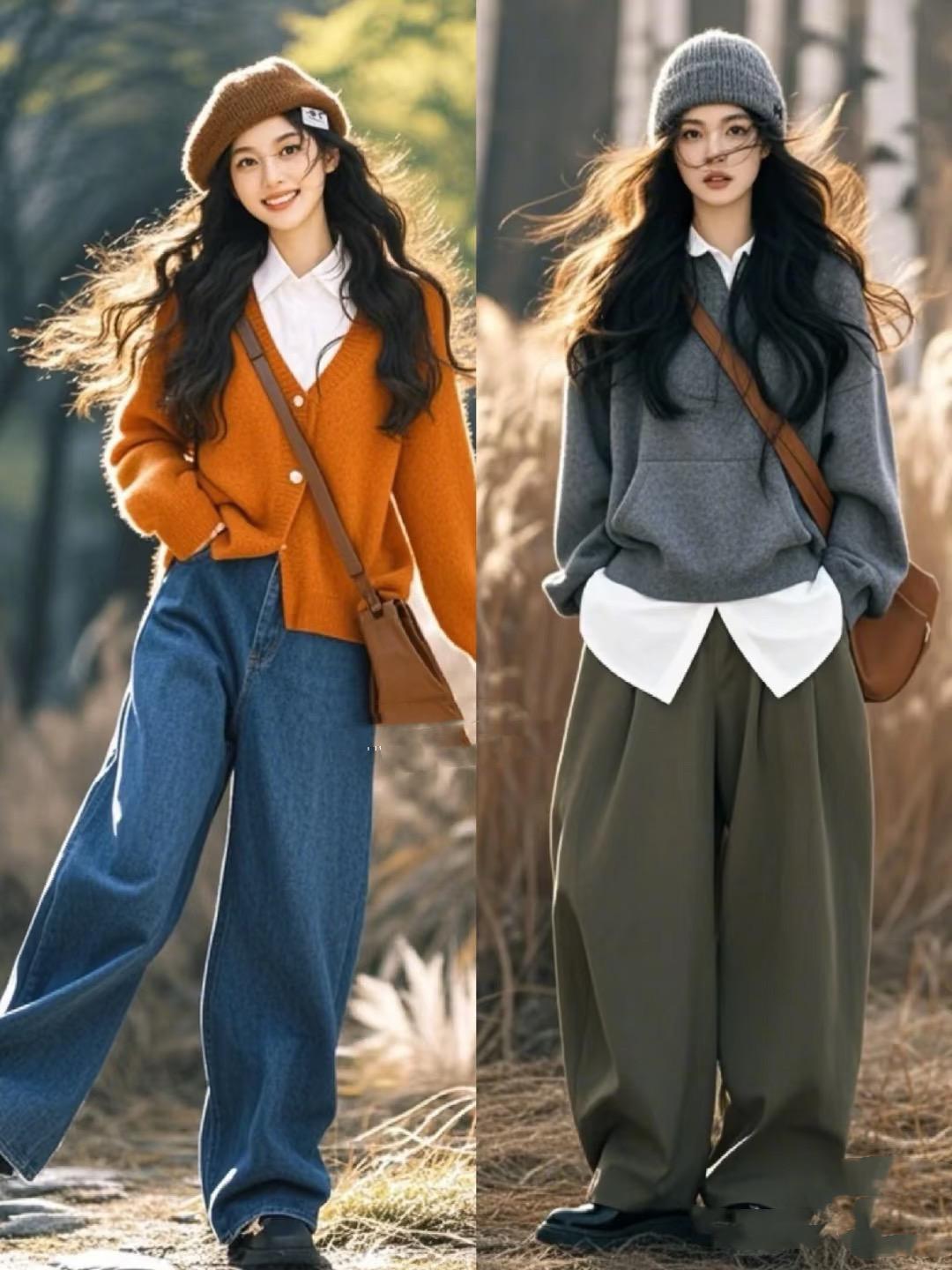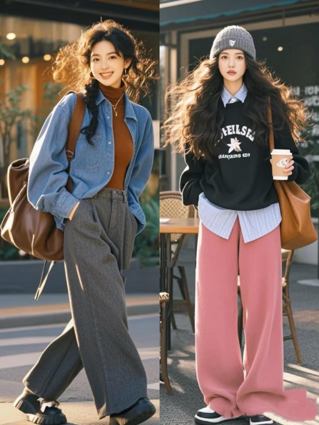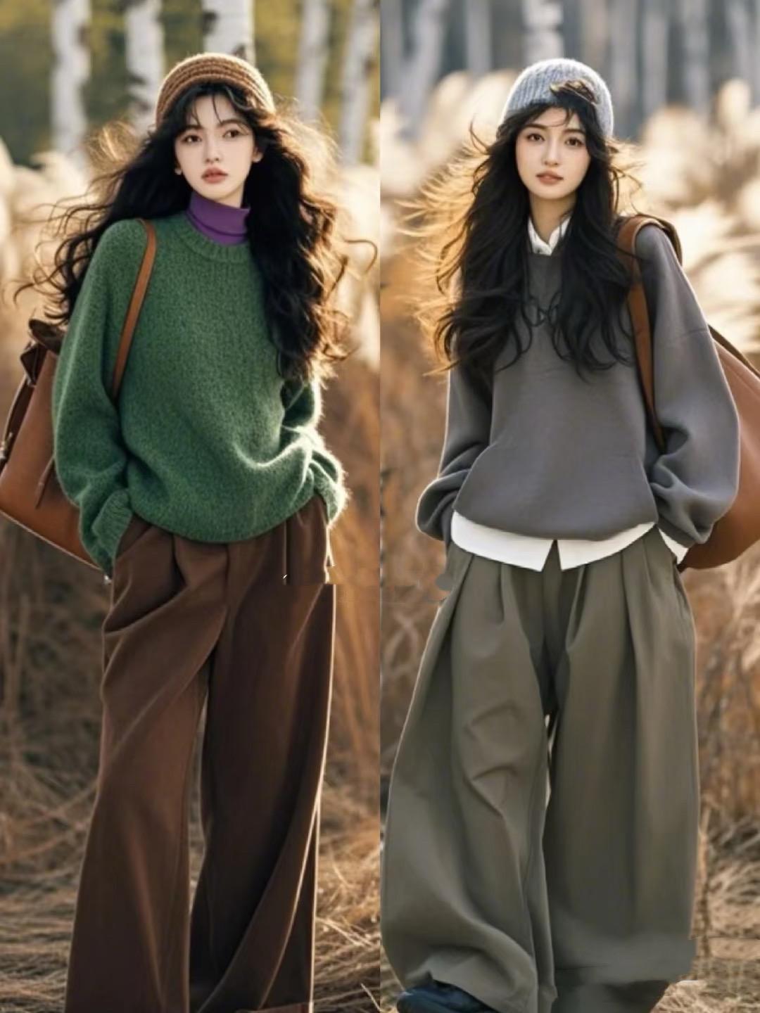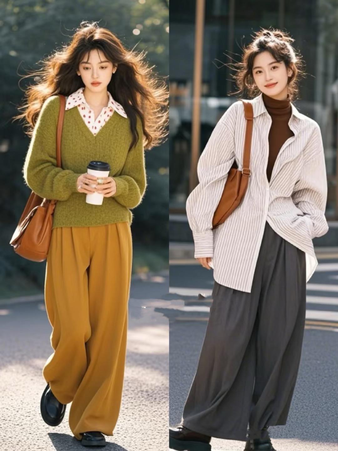 慵懶的毛衣、利落的白襯衫,搭一條加絨面料的直筒闊腿褲,那麼簡潔又高級。直筒闊腿褲配上厚底鞋,顯腿長又不壓個子。