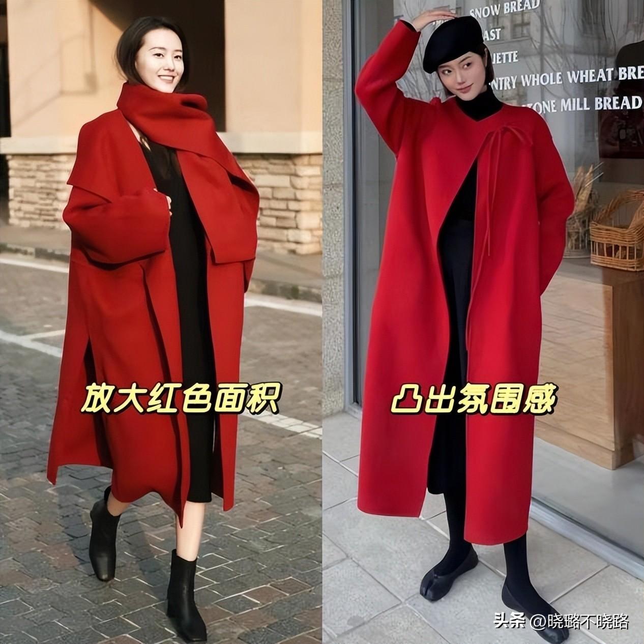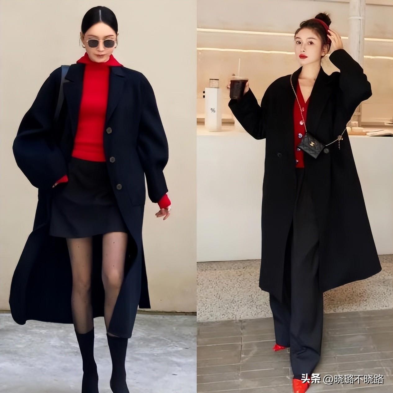 大家在穿衣搭配的時候,可以象徵性的放大彩色漆的面積,那可以突出整體搭配的氛圍感。如在紅色與黑色的搭配當中,直接選擇一件低飽和度的酒紅色大衣,配上黑色的毛衣或者闊腿褲,瞬間製造了視覺上的新鮮感,而且酒紅色的色調剛剛好,能夠更好的提亮膚色,顯白顯氣質。