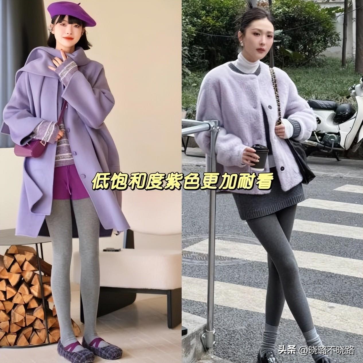 在所有的色彩當中,紫色更加偏彩色一些,在挑選的時候一定要多留意,儘量不要選擇飽和度太高的深紫色和亮紫色,低飽和度和明度的淺紫色會更加好穿,同時能夠中和麪部的暗黃感,顯得整個人更加的白皙透亮。